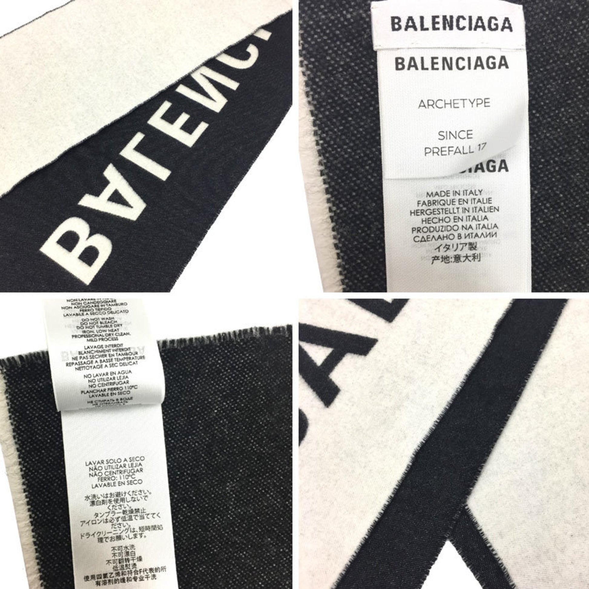 Balenciaga Marco Scarf 512732 Wool Black X White Aq10559