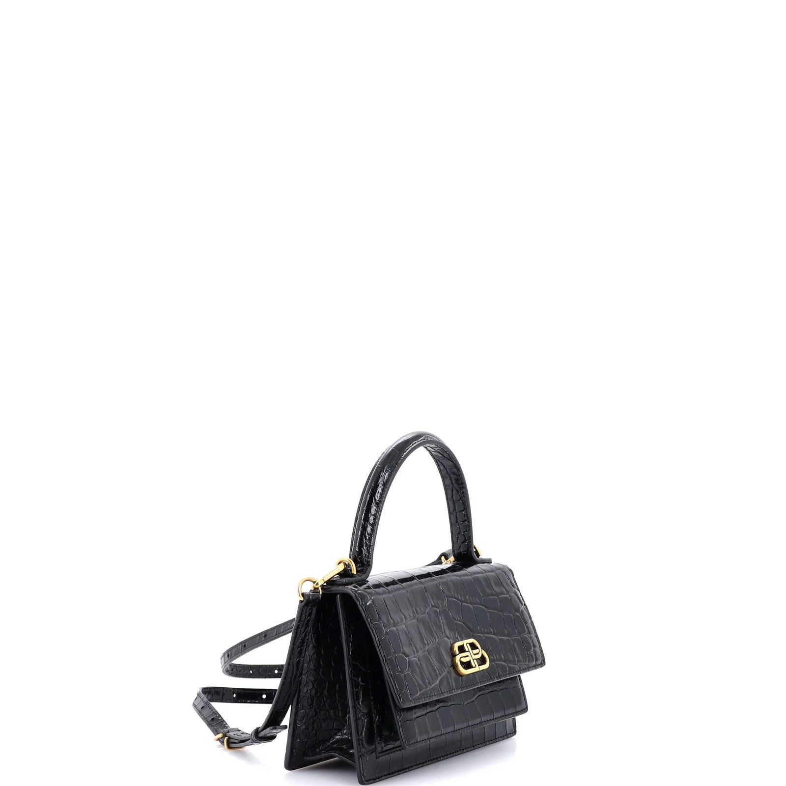 Balenciaga Sharp Top Handle Bag Crocodile Embossed Leather Xs