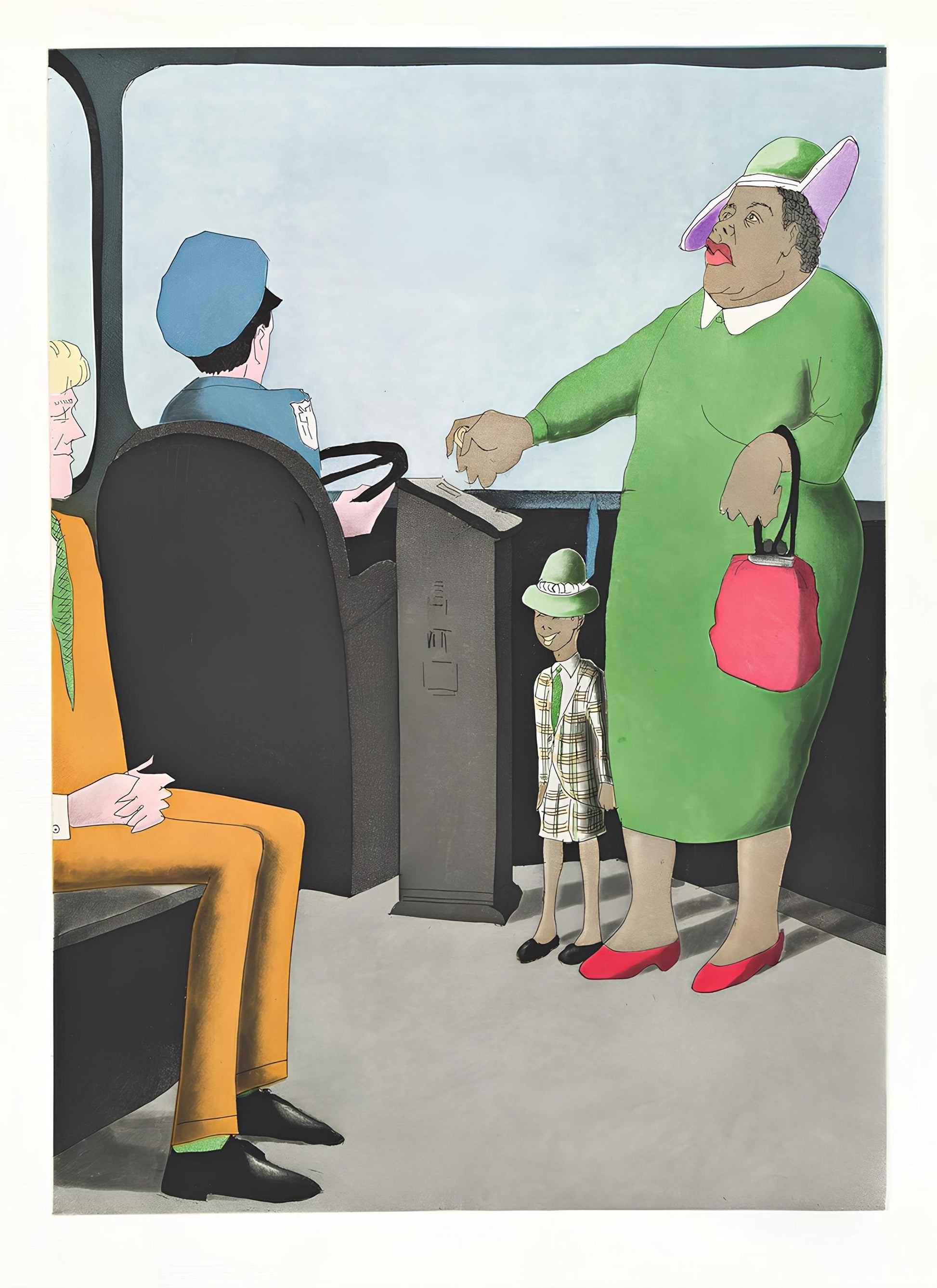Etching on vlin de Rives BFK paper. Paper Size: 22 x 17 inches. Excellent condition. Inscription: Unsigned and unnumbered, as issued. Notes: From the folio, Everything That Rises Must Converge, 2005. Published by The Limited Editions Club, New York; printed by Wingate Studio, Hinsdale, under the direction of Peter Pettengill, Hinsdale, 2005. Excerpted from the folio, This edition of CCC examples of Everything That Rises Must Converge was printed on BFK Rives. Dan Carr and Julia Ferrari designed the typography, cast the Kis-Janson type in metal, set the type by hand and printed the text at Golgonooza Letter Foundry & Press, Ashuelot, New Hampshire. The six color etchings were printed by hand on BFK Rives by Peter Pettengill at Wingate Studio in Hinsdale, New Hampshire.