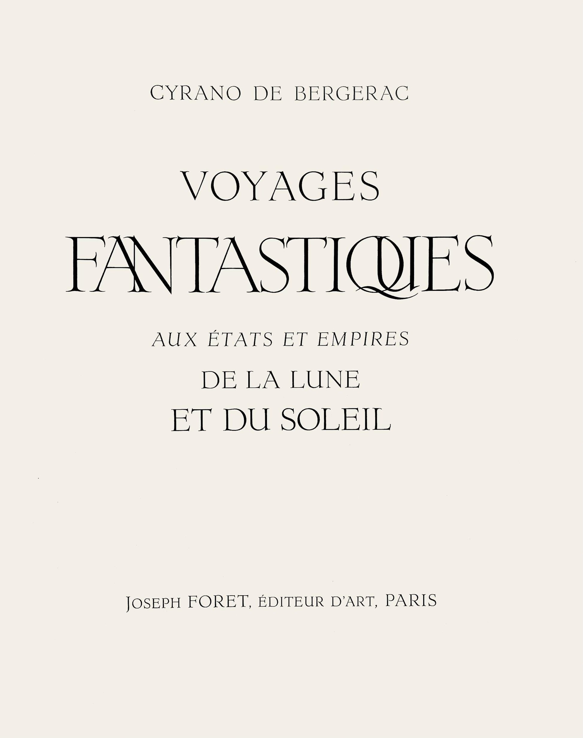 Drypoint etching on papier de Rives B.F.K. pur fil paper. Paper size: 16.125 x 12.875 inches. Excellent condition. Unsigned and unnumbered, as issued. Notes: From the folio, Voyages fantastiques aux tats et empires de la lune et du soleil, 1958. Published by Joseph Foret, diteur d'Art, Paris; printed by Roger Lacourire et Jacques Frelaut, Montmartre, Paris, July 12, 1958. Excerpted from the folio (translated from French), Recognizing a joy equaling the mastery, Bernard......