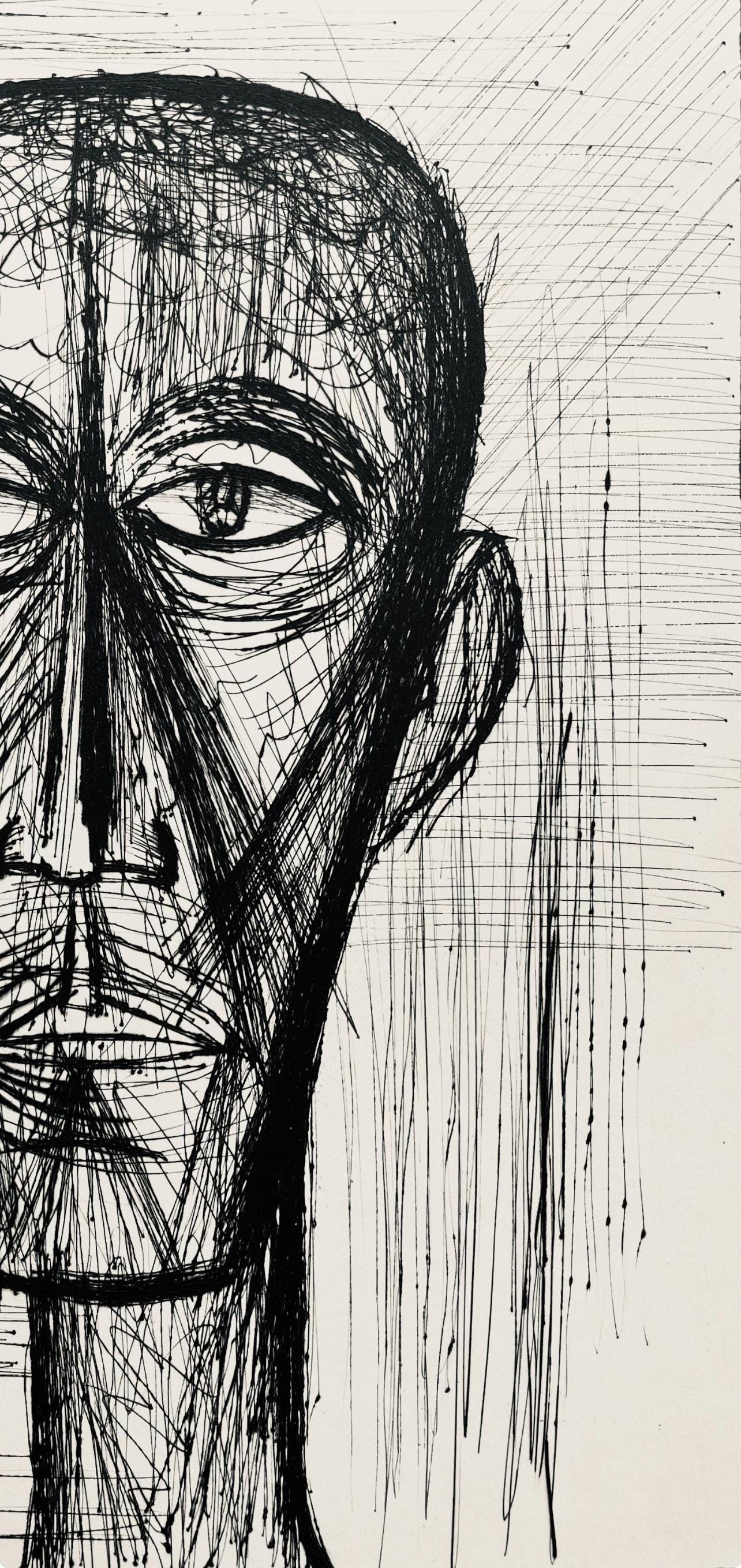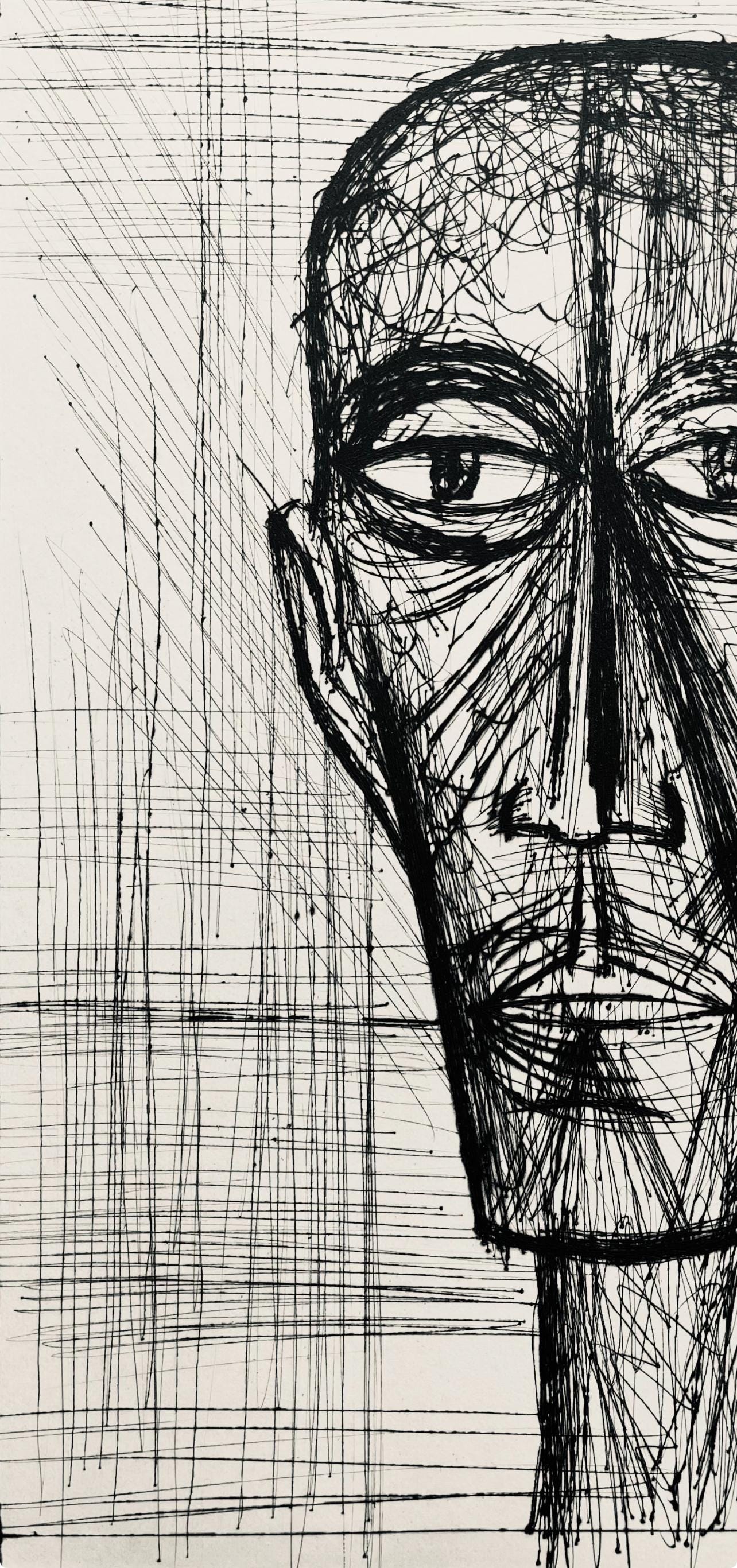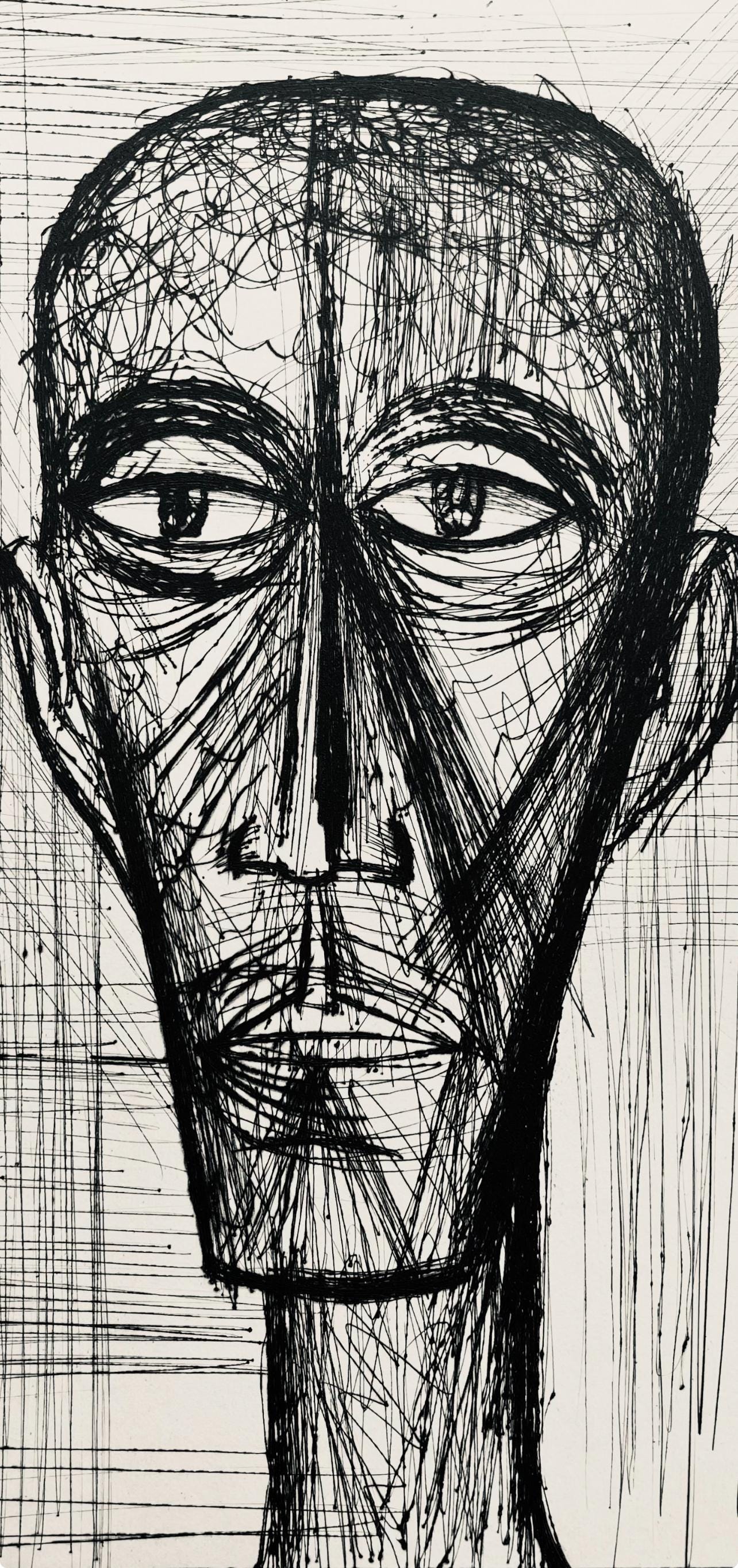 BERNARD BUFFET (1928-1999) was a French painter, printmaker, and sculptor. An extremely prolific artist, he produced a varied and extensive body of work. His style was exclusively figurative and is often classified as Expressionist or "miserabilist". Buffet enjoyed worldwide popularity in the 1950s and was often compared to Pablo Picasso for his fame and talent. By the end of the 1950s, however, the public and art community turned strongly against him due to changing artistic tastes, Buffet's lavish lifestyle, and his extremely prolific output. The 21st century saw a renewed interest in his oeuvre.