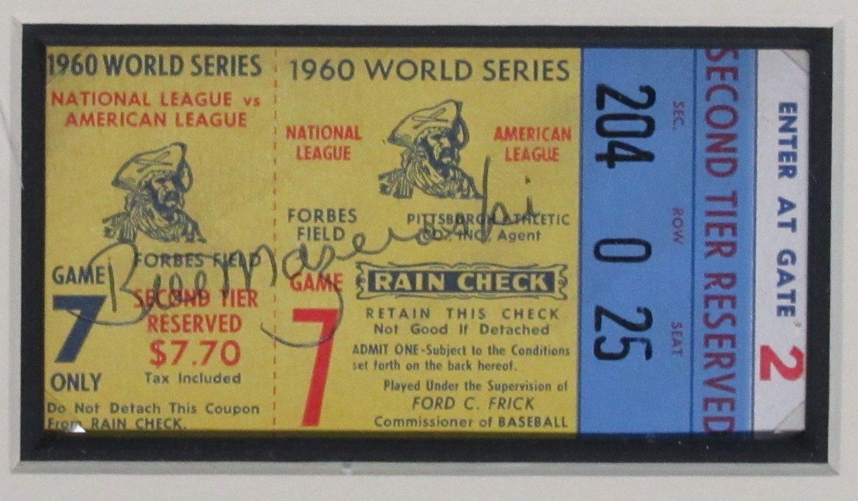 Bill Mazeroski Pirates1960 World Series Signed Ticket Collage Framed 190542