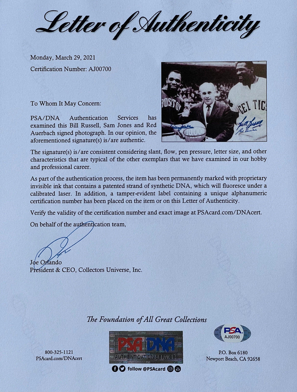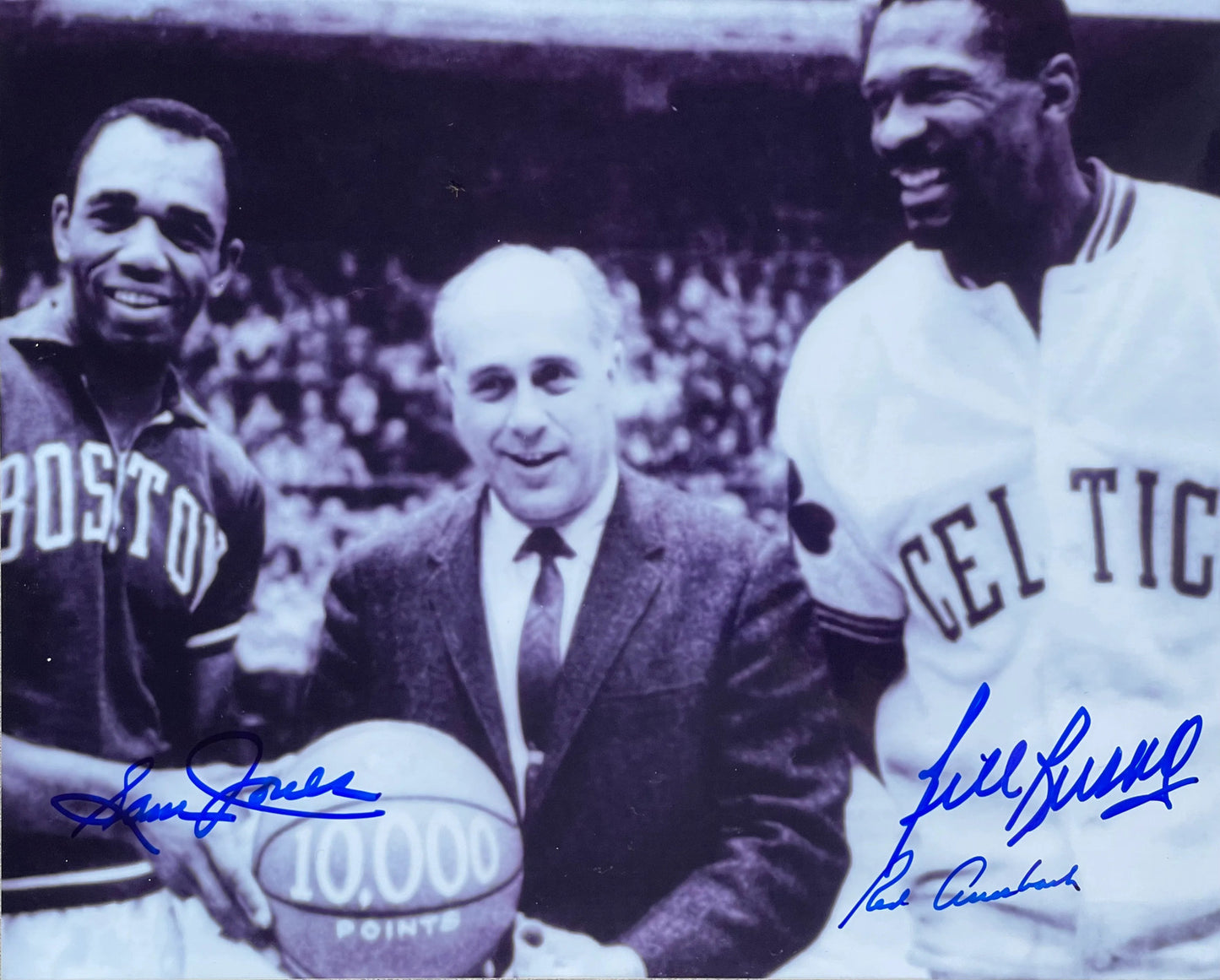 Bill Russell Sam Jones & Red Auerbach Autographed 8X10 Basketball Photo (Psa)
