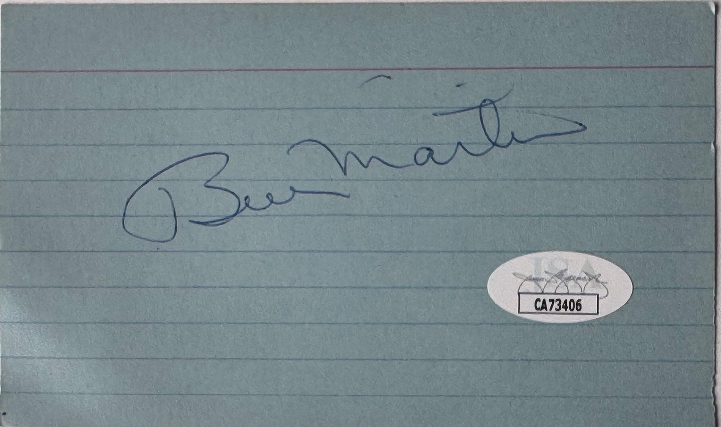 Billy Martin Autographed 3X5 Index Card (Jsa)