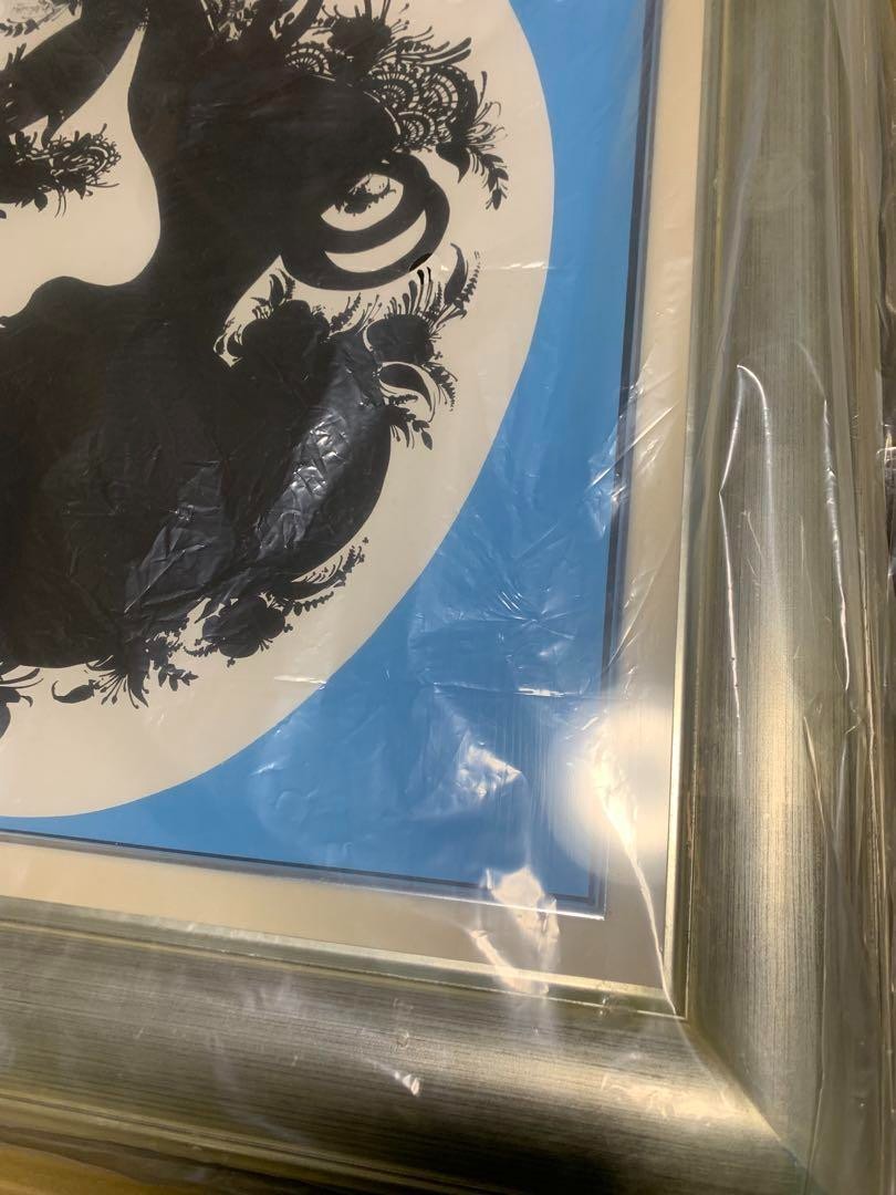 Bjorn Wiinblad Vintage Silhouette Girl Blue Silk Screen Poster Silver Frame Blue