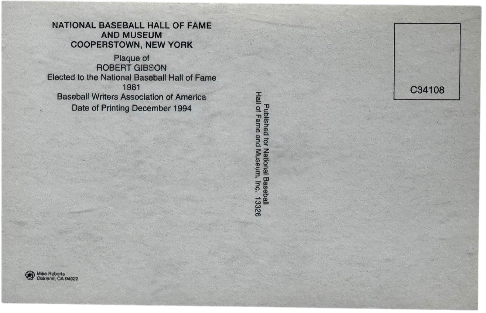 Bob Gibson Autographed Hall Of Fame Plaque Postcard