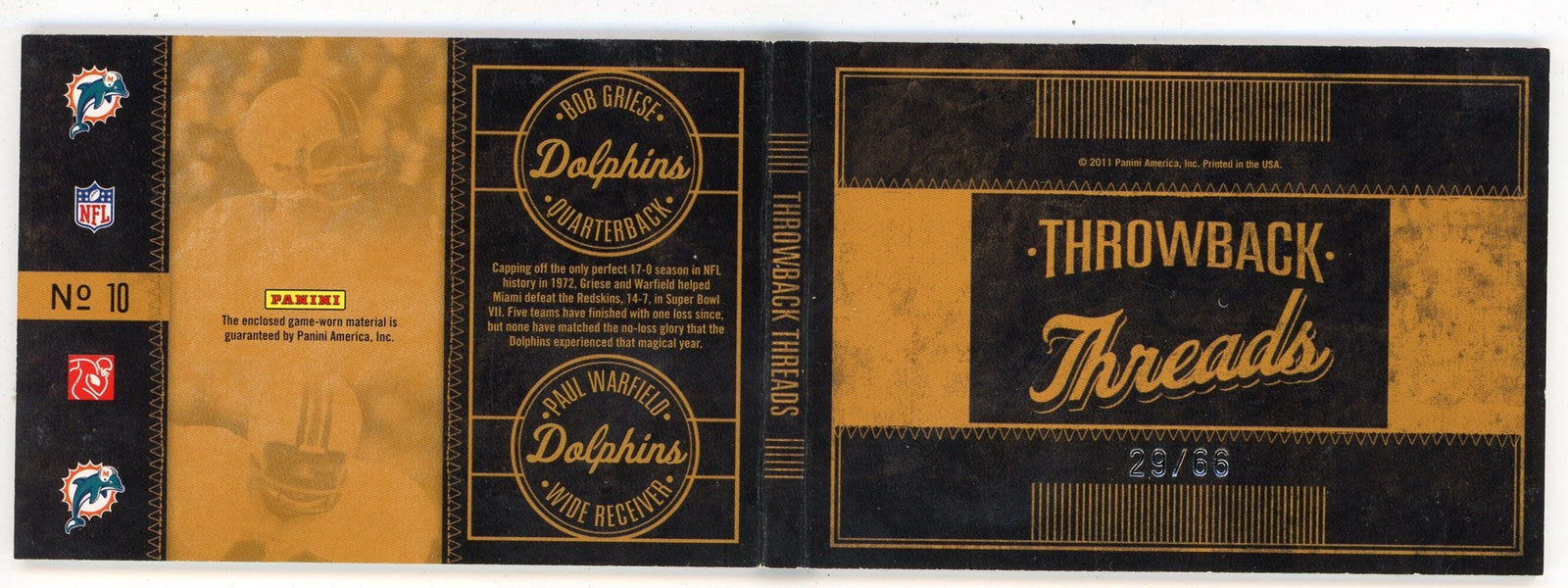 Bob Griese/ Paul Warfield 2011 Panini Throwback Threads #10