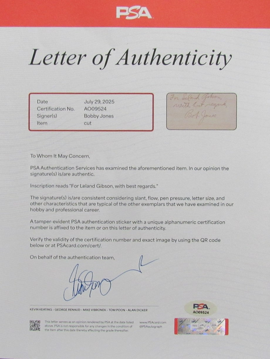 Bobby Jones Golf Pro Signed/Inscribed 26.5X23