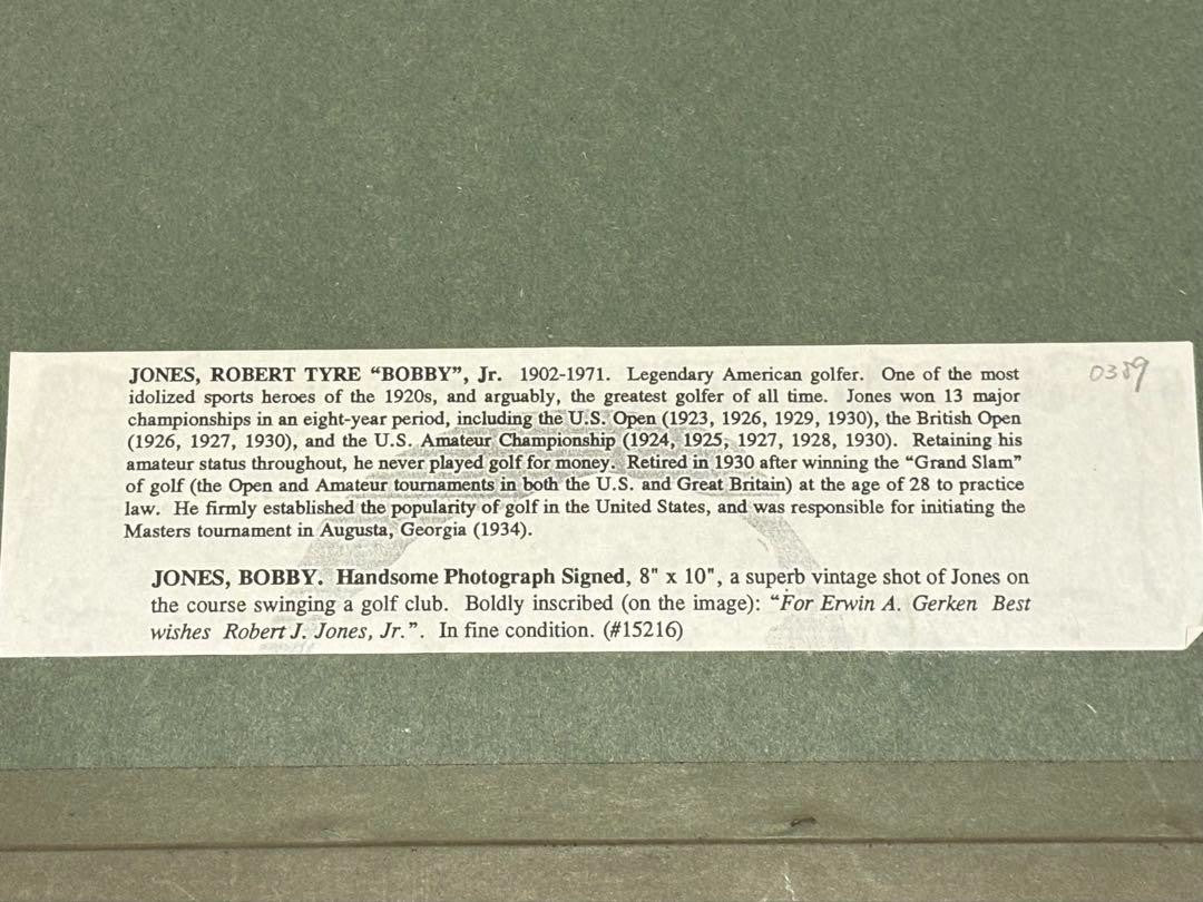 Bobby Jones Signed Photo 8X10 Vintage Golf Legend W/ Frame (Believed Authentic)