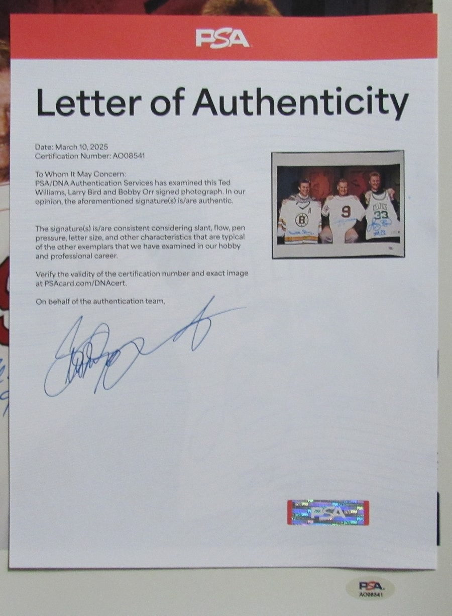 Bobby Orr/Ted Williams/Larry Bird Signed Boys Of Boston 16X20 Photo Psa/Dna 5332