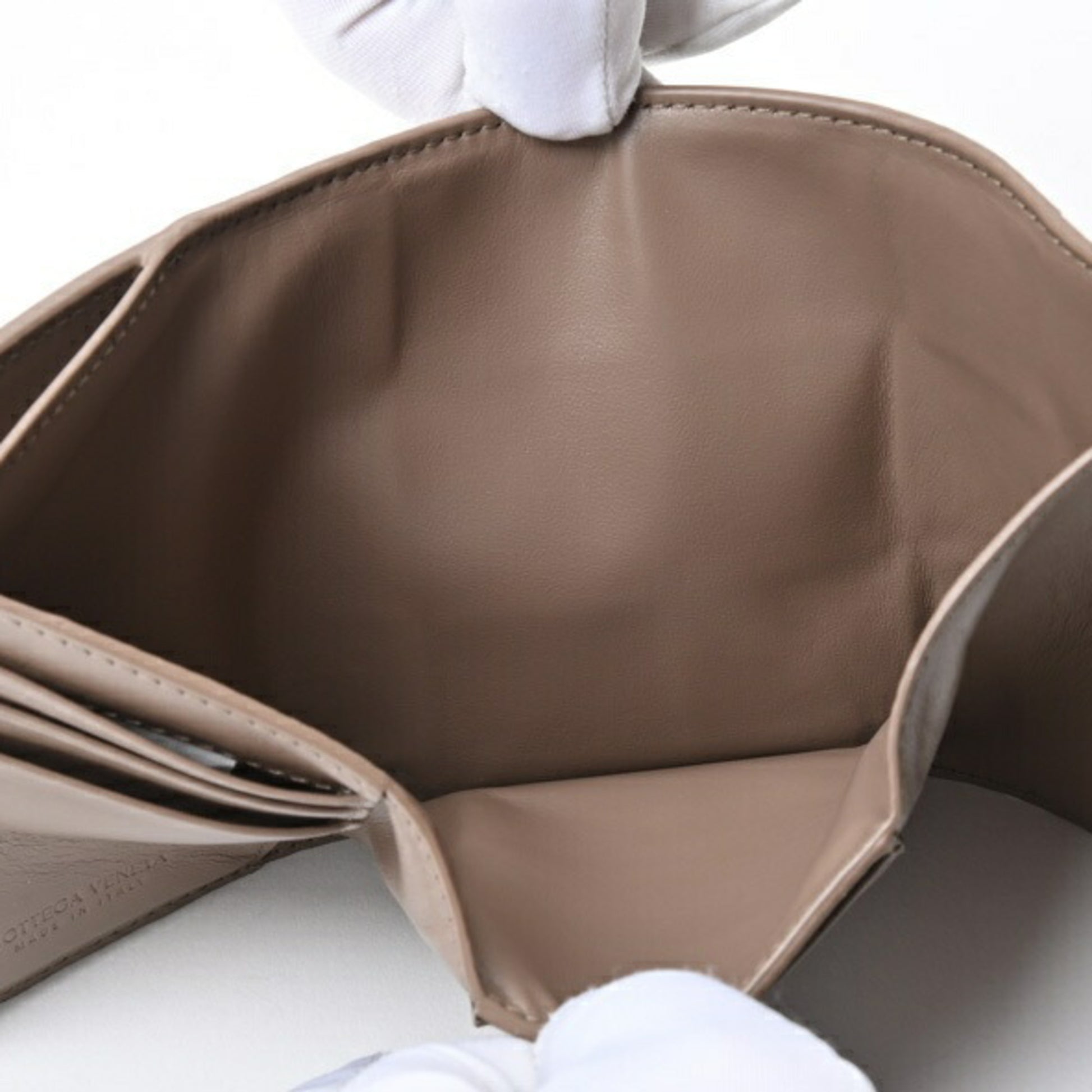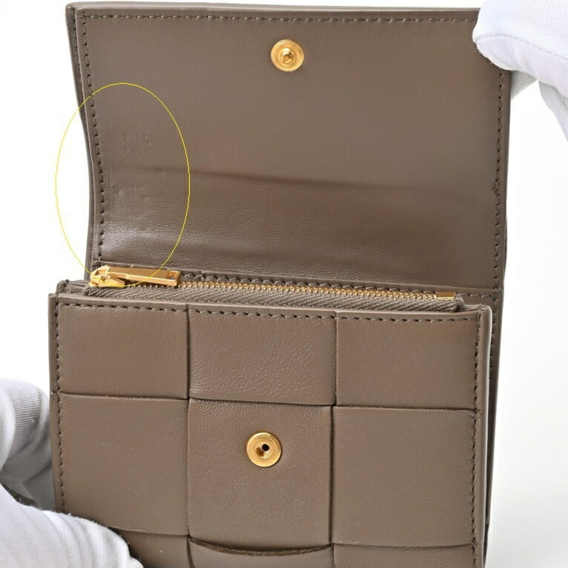 Bottega Veneta Cassette Tri-Fold Wallet 750245 Intrecciato Leather Taupe Gray E-156538