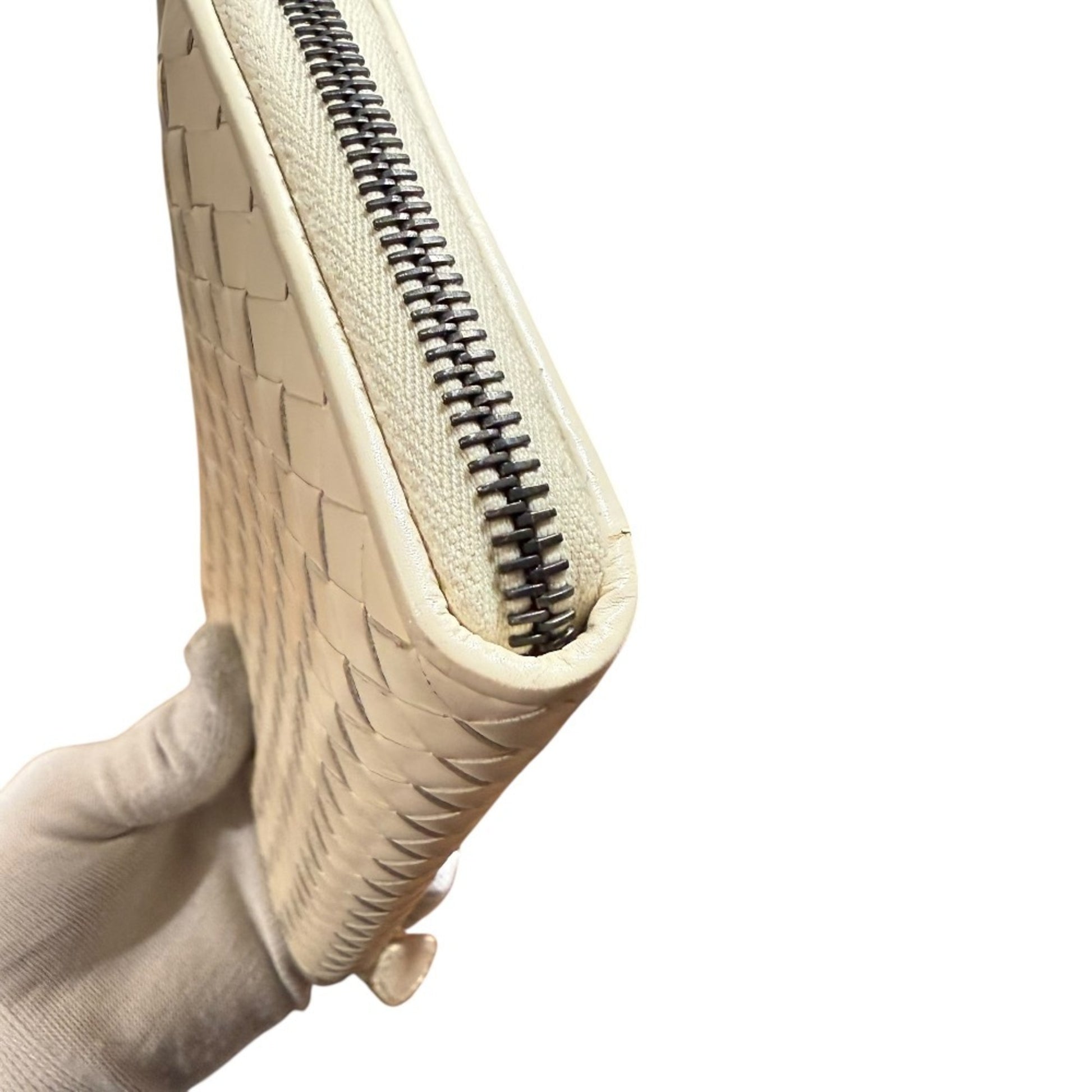 Bottega Veneta Leather Intrecciato Round Zip Long Wallet In Ivory