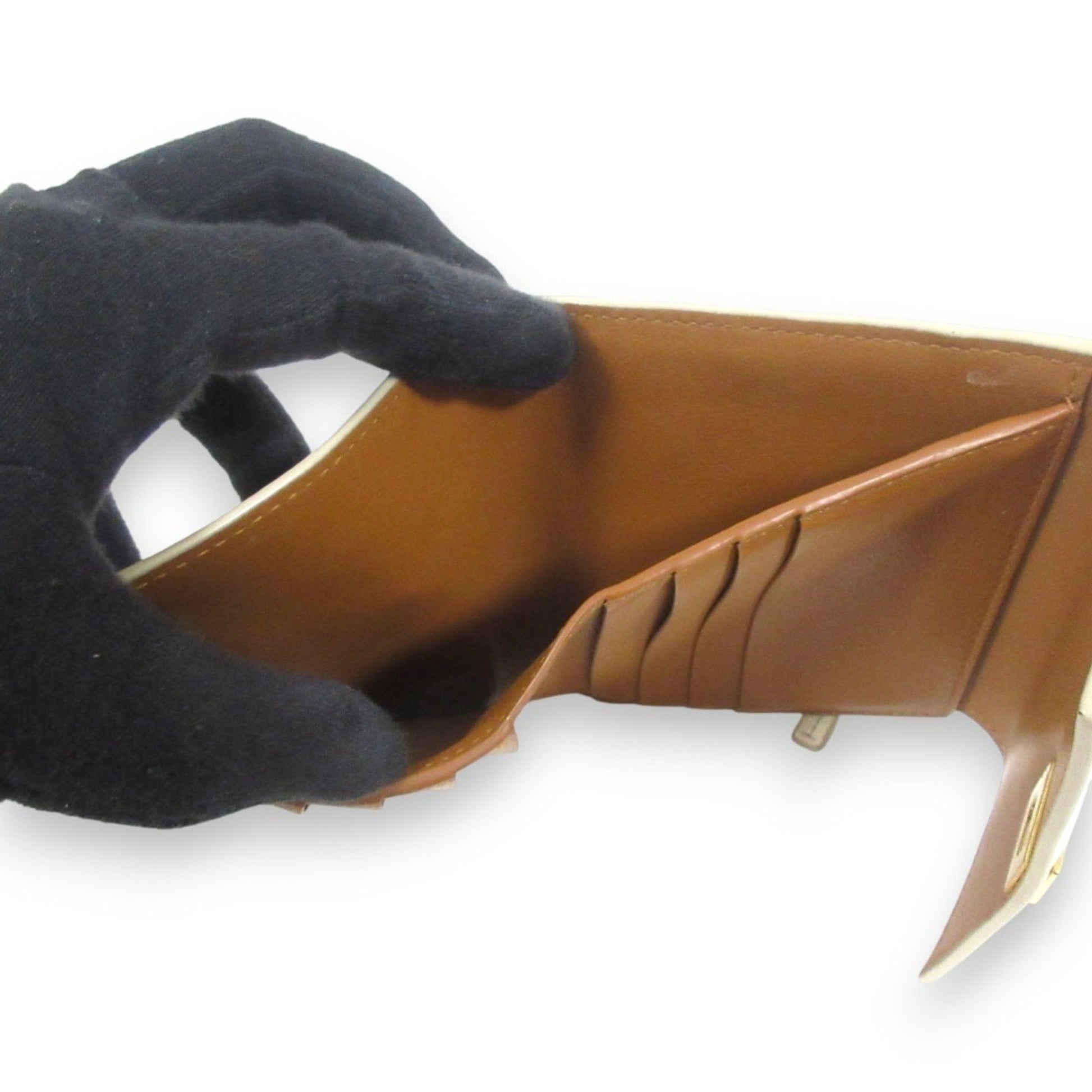 Bottega Veneta Palmellato Leather Tri-Fold Wallet Compact Ivory X Gold Hardware