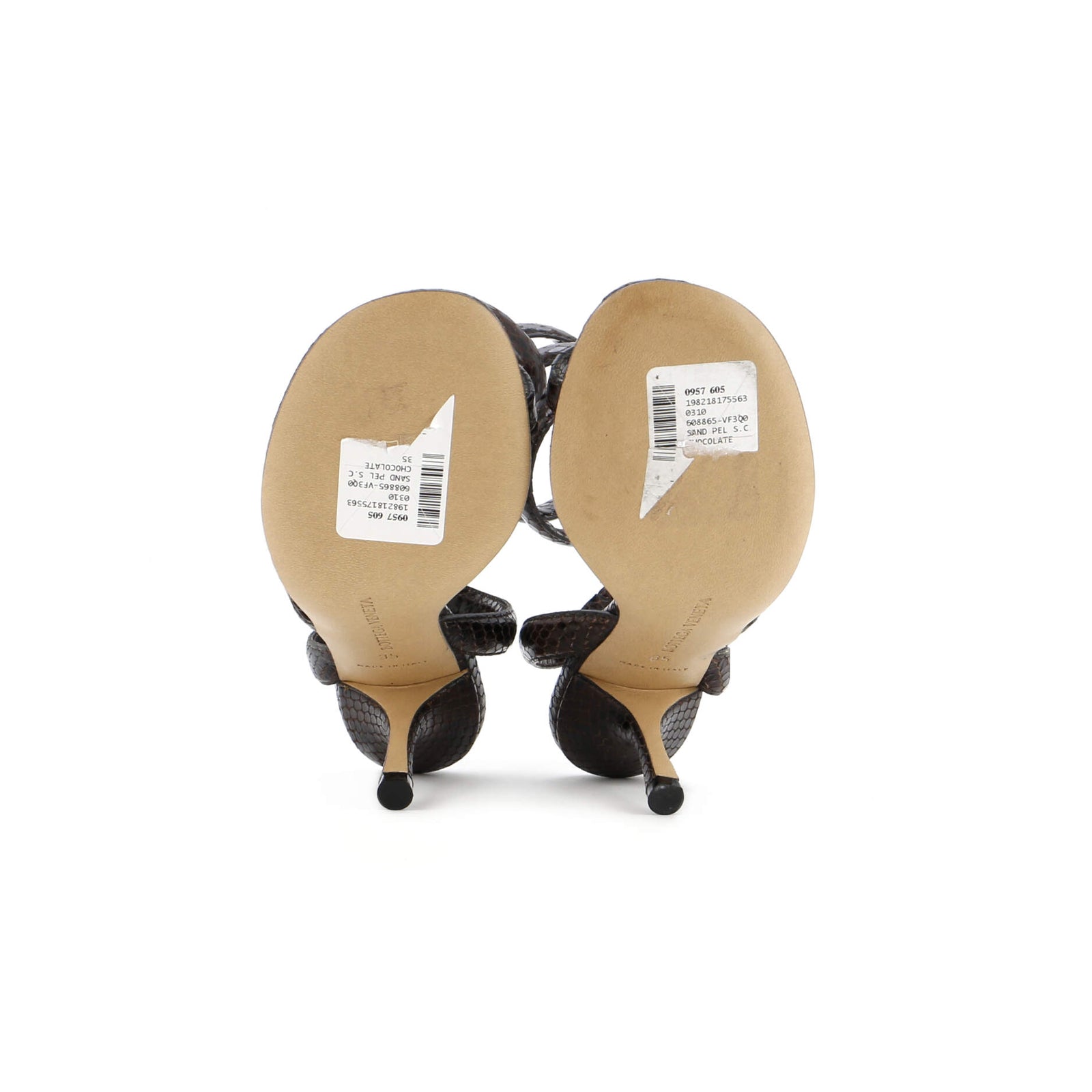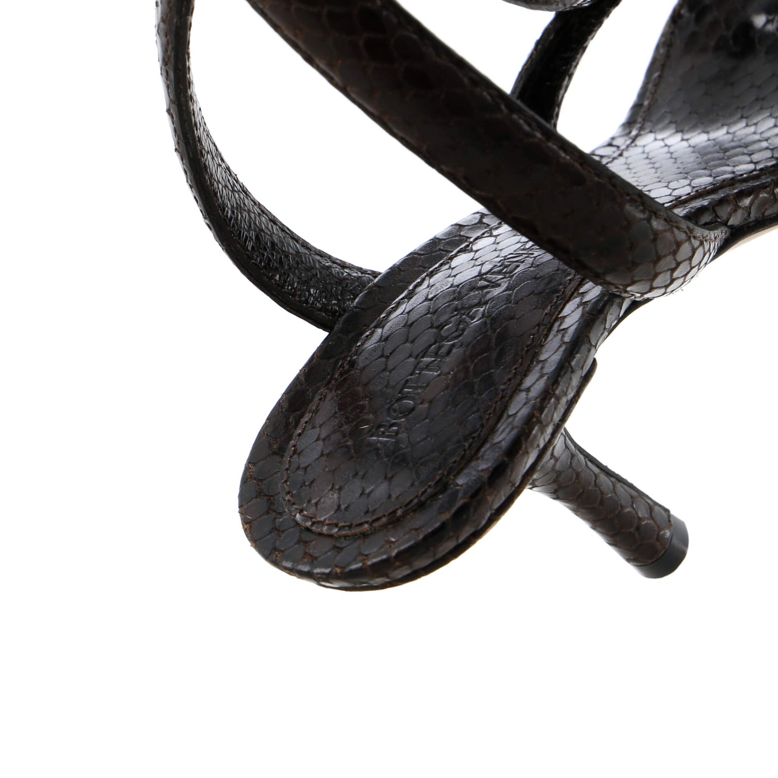 Bottega Veneta Women'S Spiral Thong Heeled Sandals Python Embosssed Leather