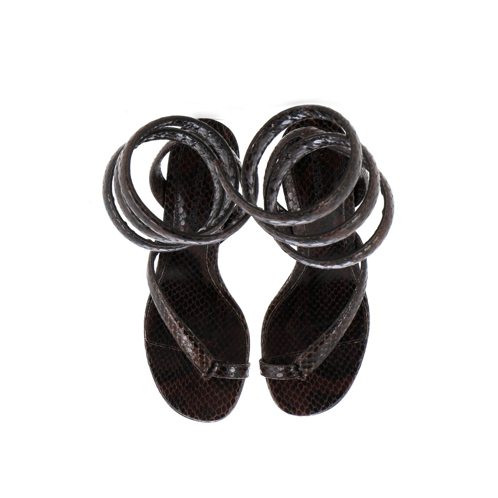 Model: Women's Spiral Thong Heeled Sandals Python Embosssed Leather