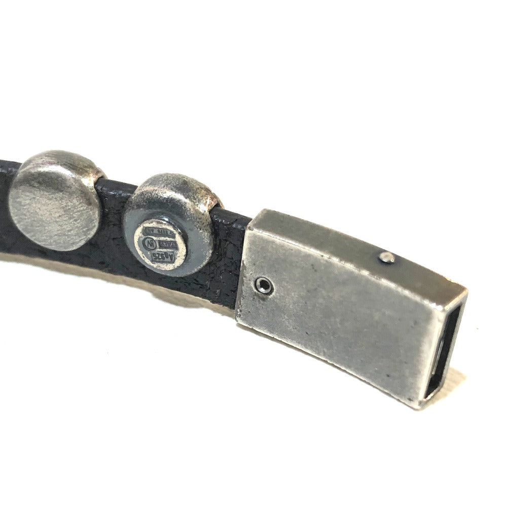 Bottegaveneta Bracelet Ag925 , Leather Silverx Black Intrecciato Mens S