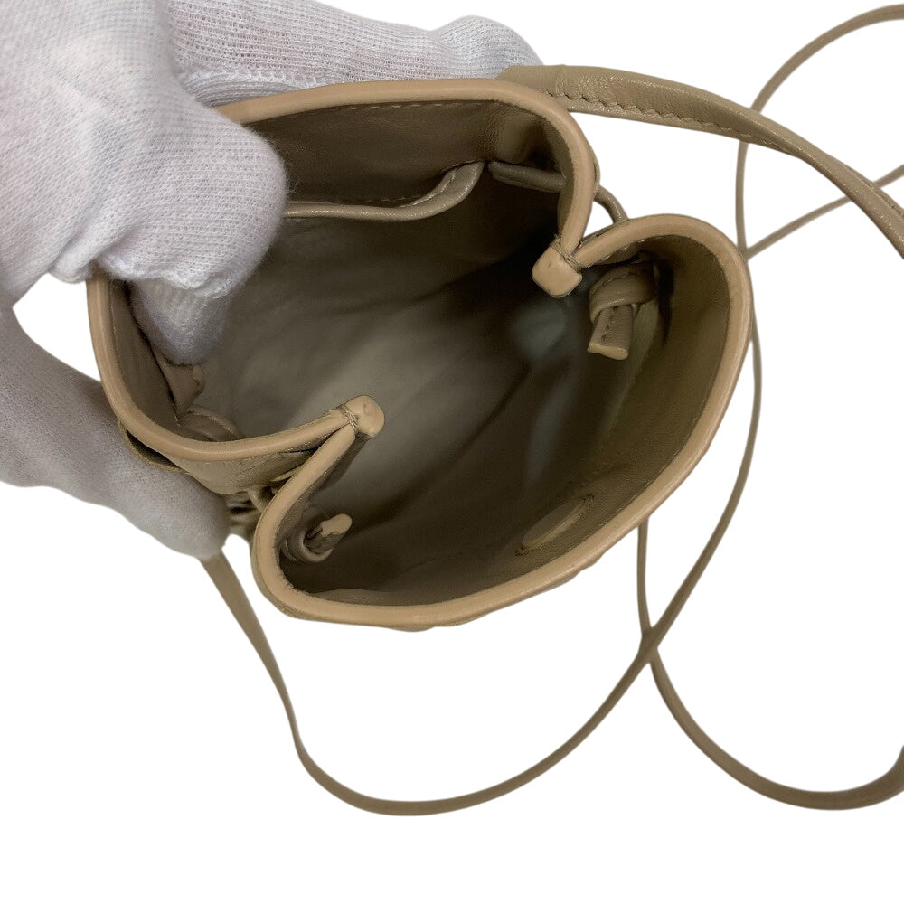 Bottegaveneta Shoulder Bag Leather Beige Pouch Drawstring Intrecciato Women