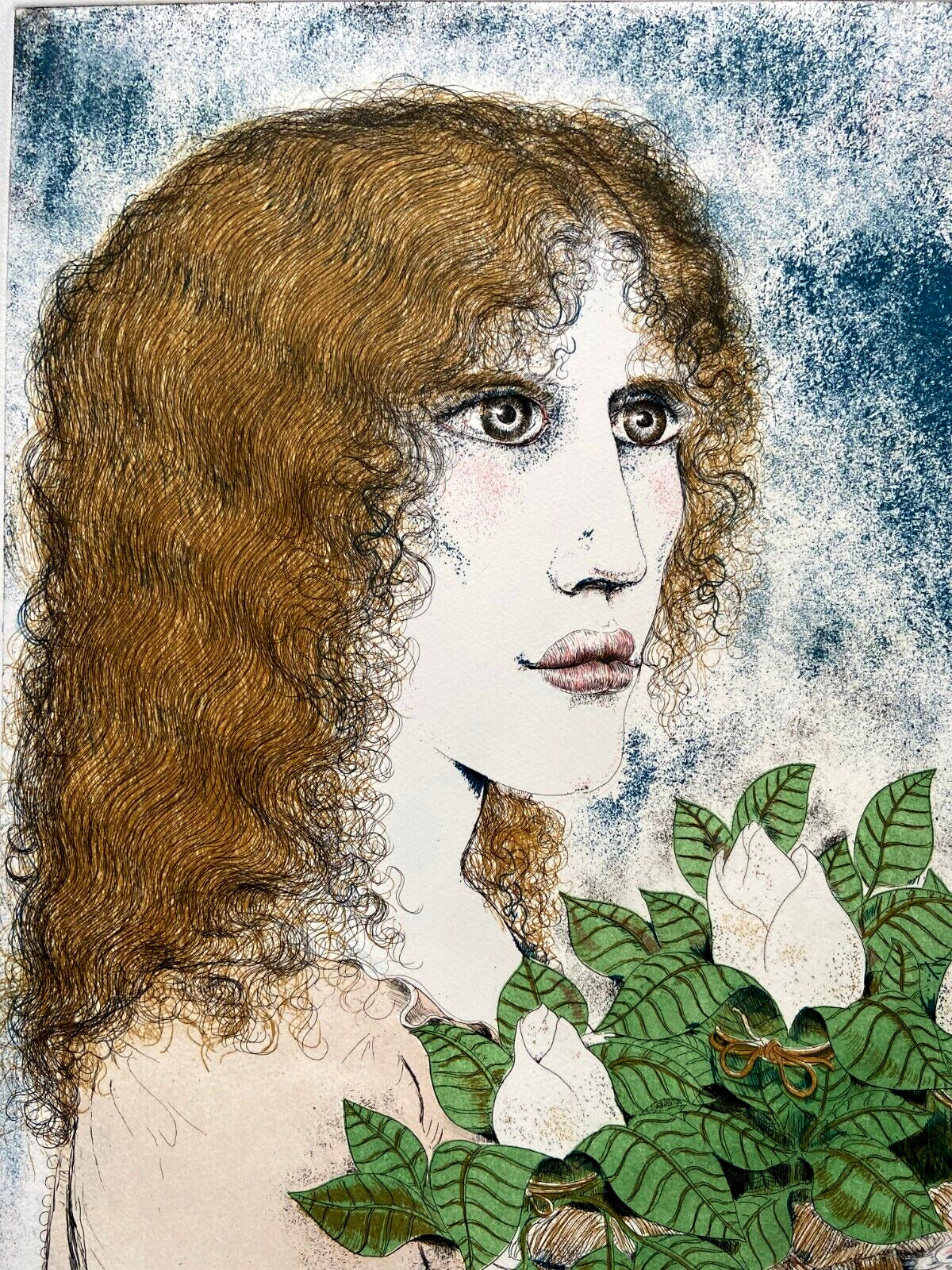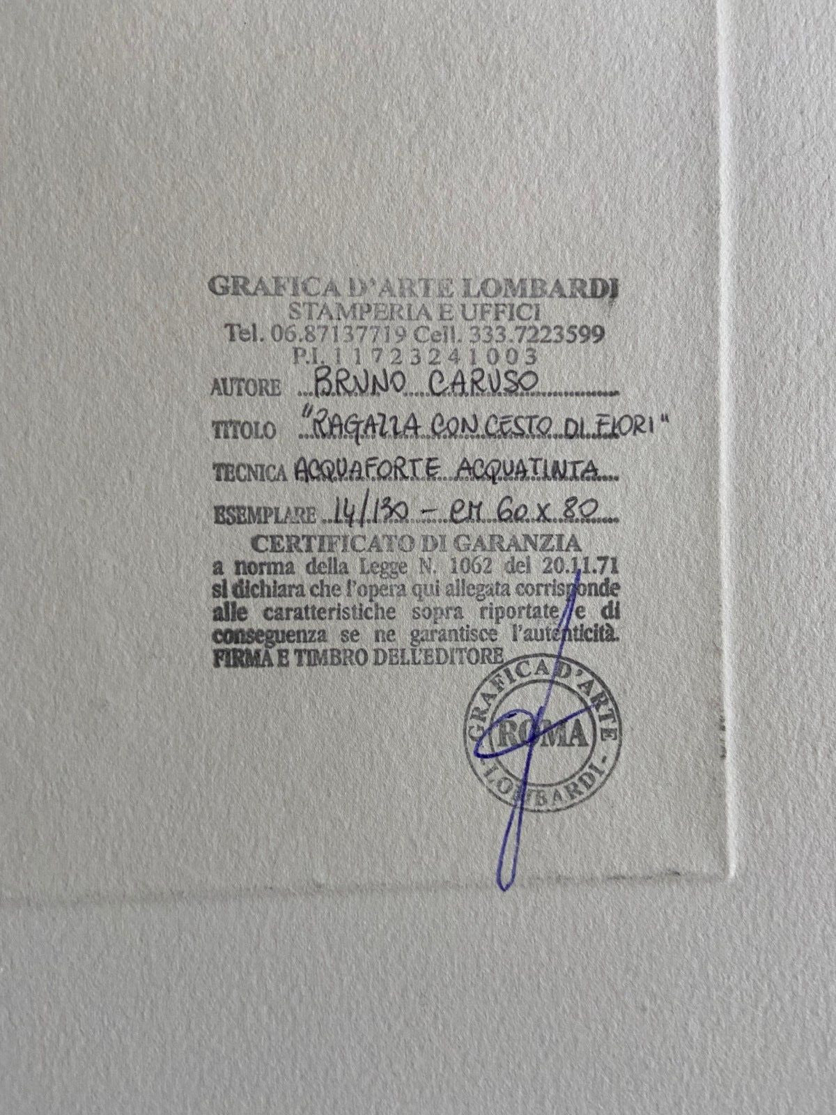Bruno Caruso "Girl with a basket of flowers" aquatint etching 60 x 80 cm Specimens: 130 numbered specimen authenticity certificate according to the law of the publisher Bruno Caruso "Girl with a basket of flowers" aquatint etching 60 x 80 cm Specimens: 130 numbered specimen authenticity certificate according to the law of the publisher