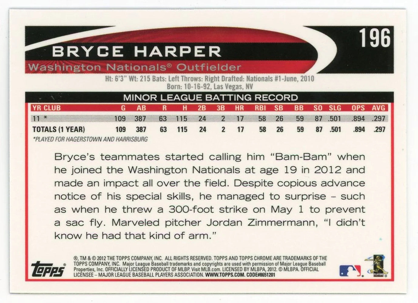 Bryce Harper 2012 Topps Chrome Silver #196 Card