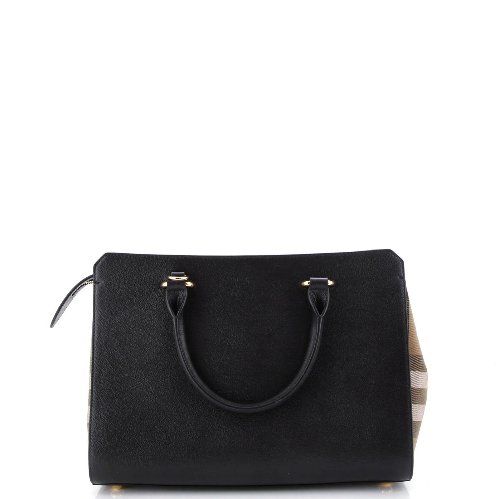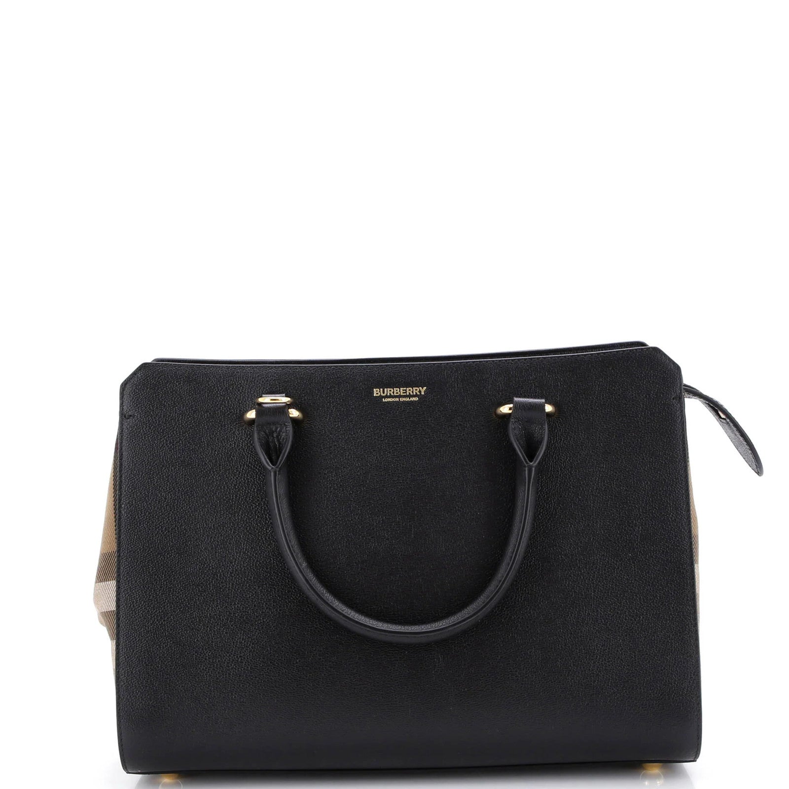 Burberry Banwell Tote Leather And House Check Canvas Small