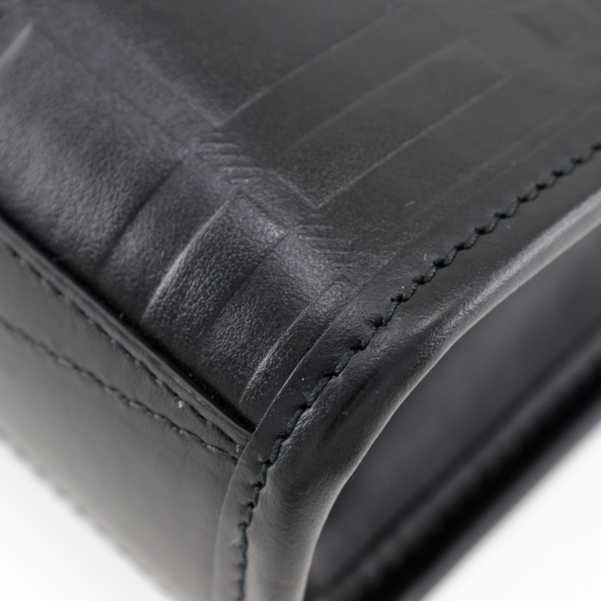 Burberry Embossed Check Handbag Shoulder Calf Black 2Way