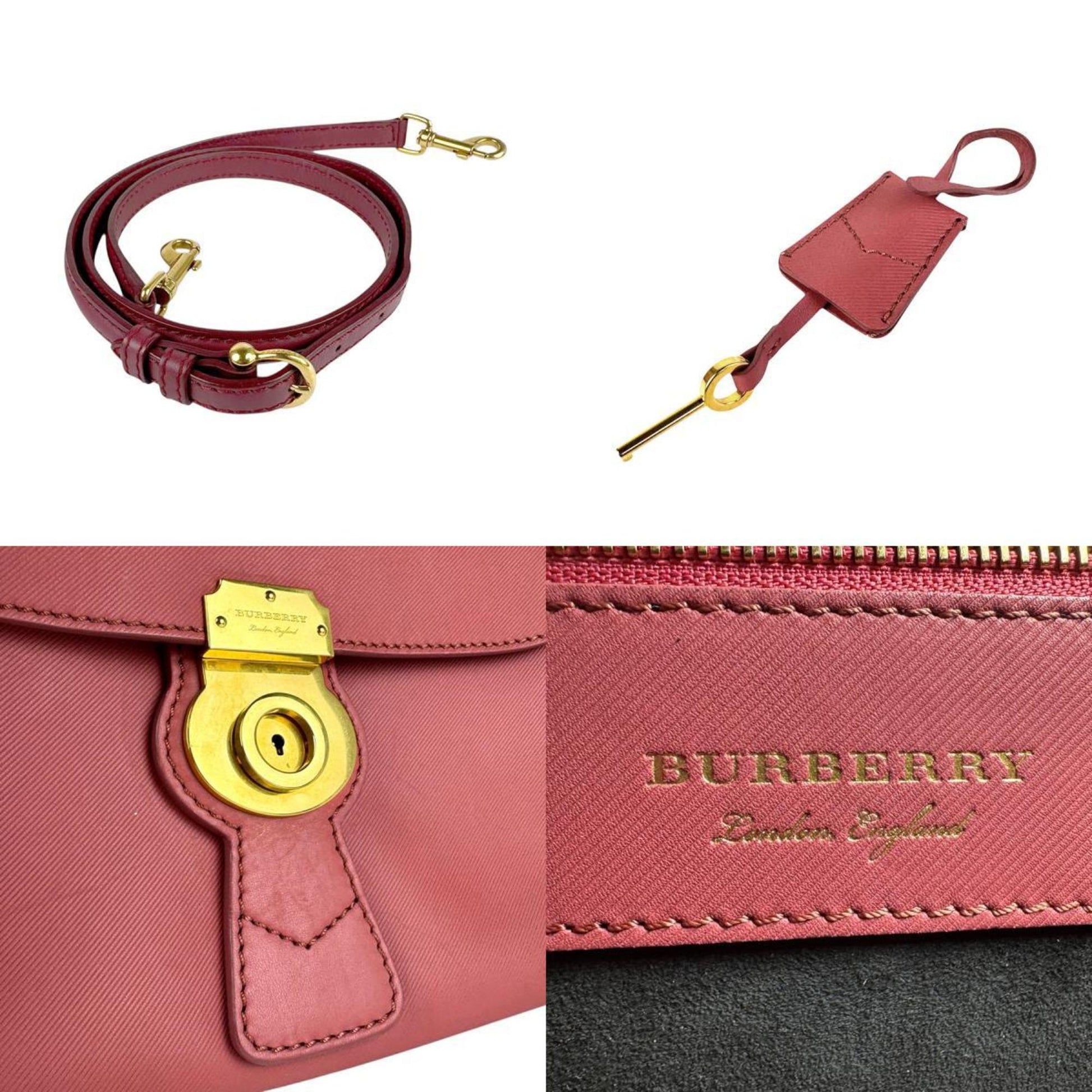 Burberry Handbag Shoulder Bag Leather Pink Burgundy Gold