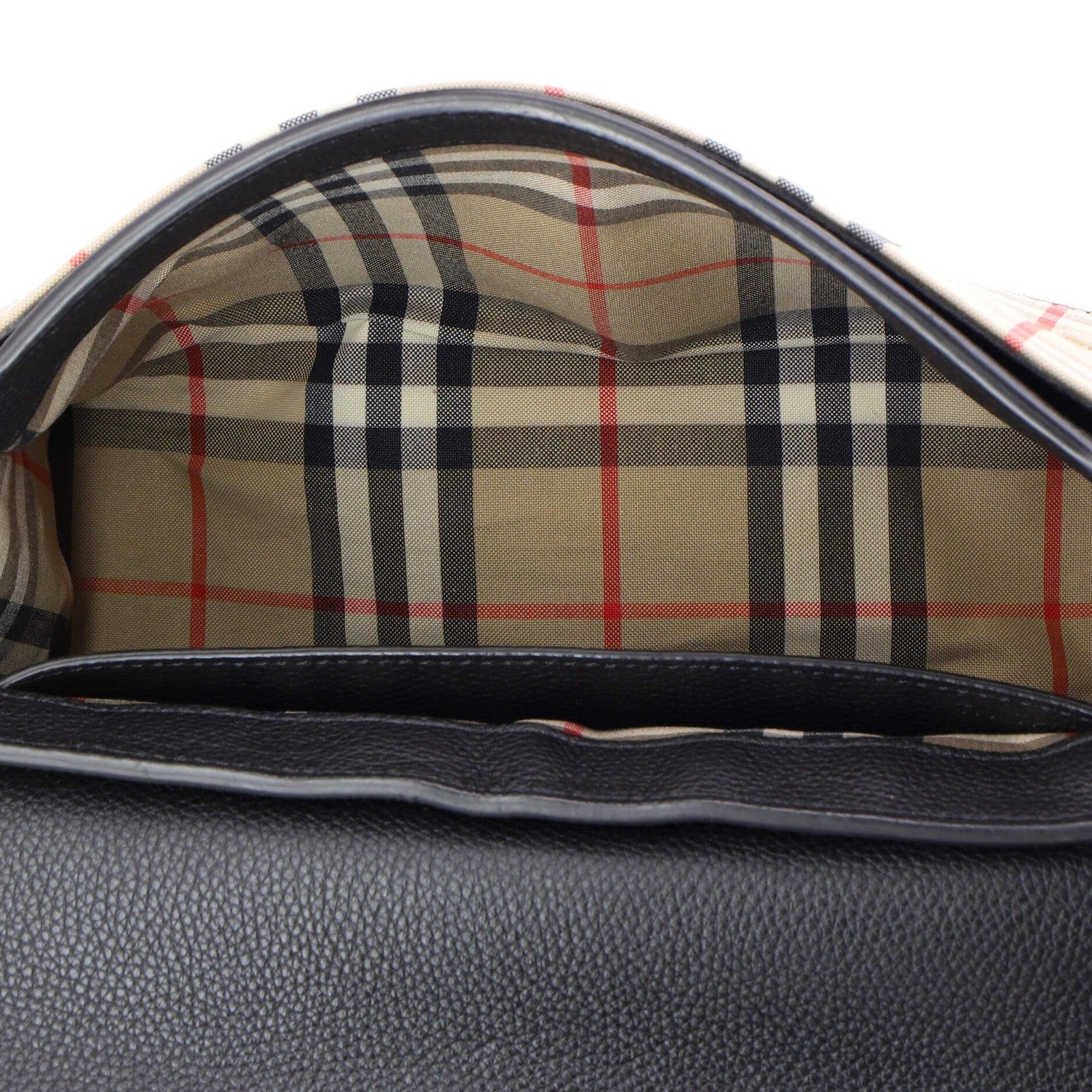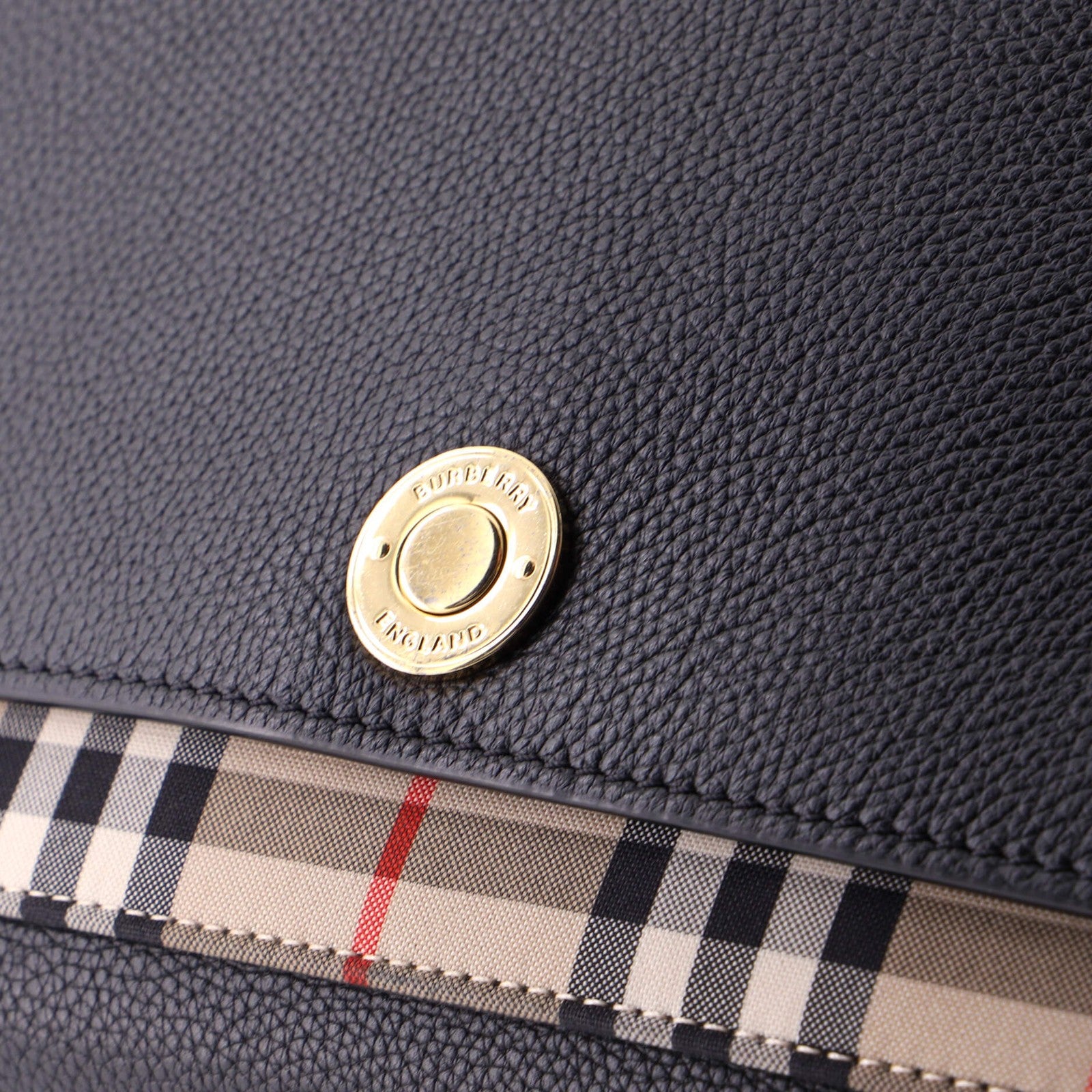 Burberry Note Crossbody Bag Leather With Vintage Check Canvas Medium