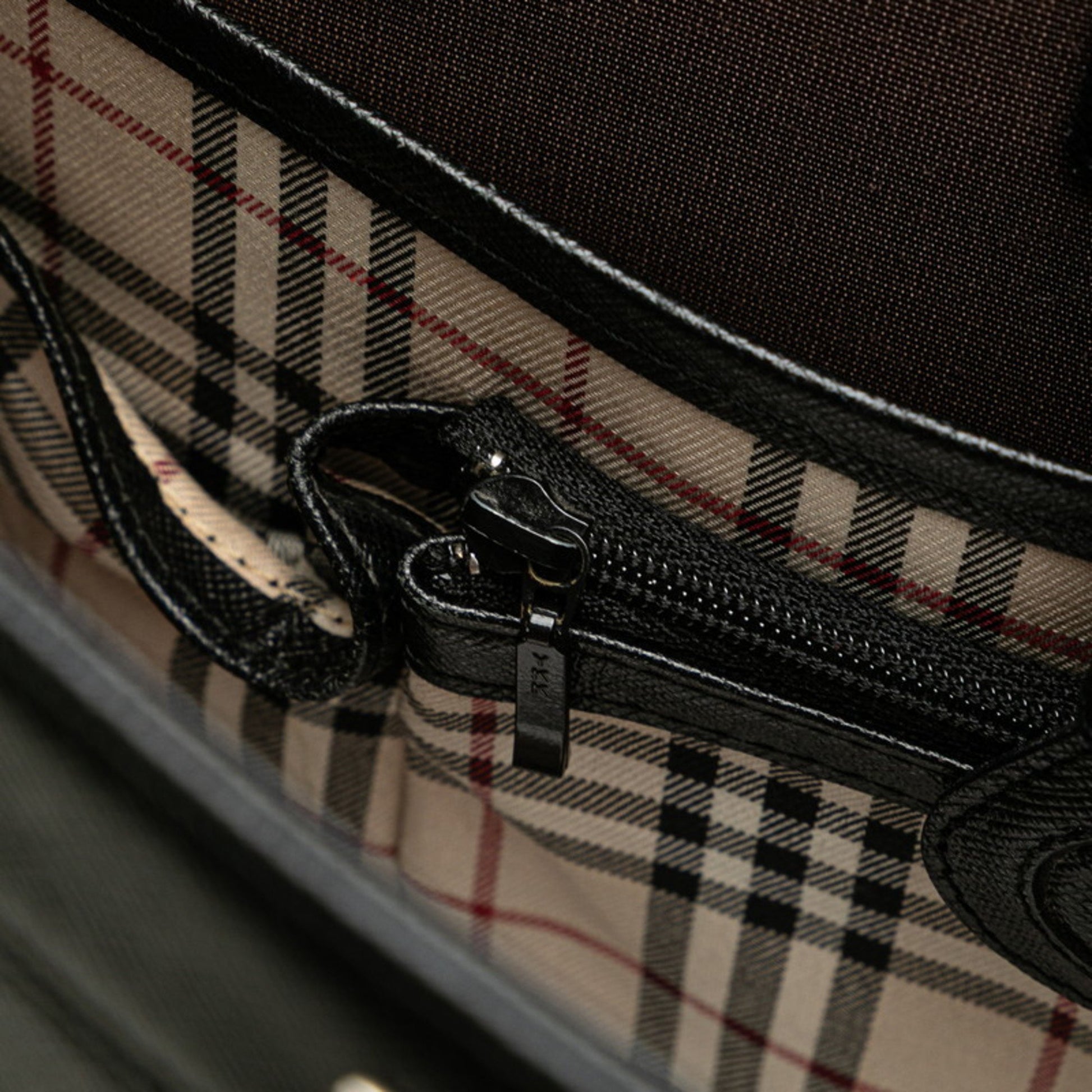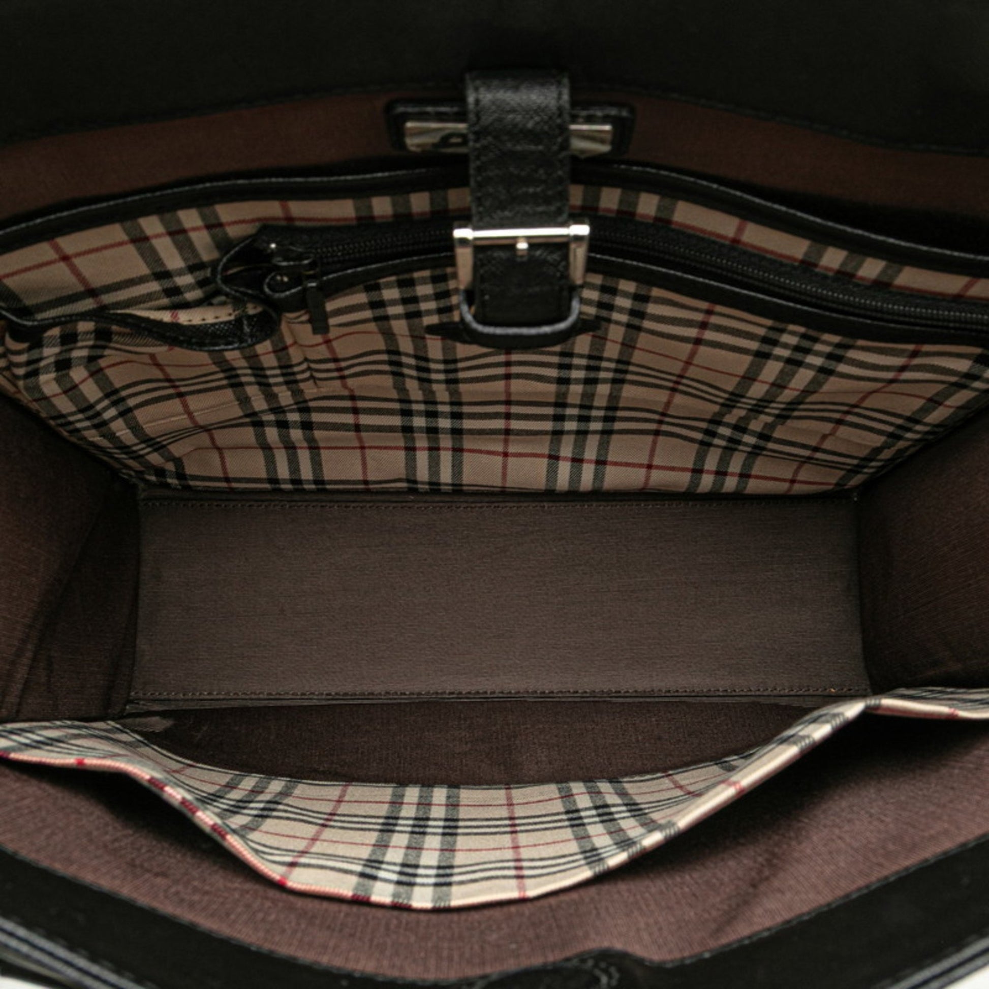 Burberry Nova Check Handbag Tote Bag Black Leather