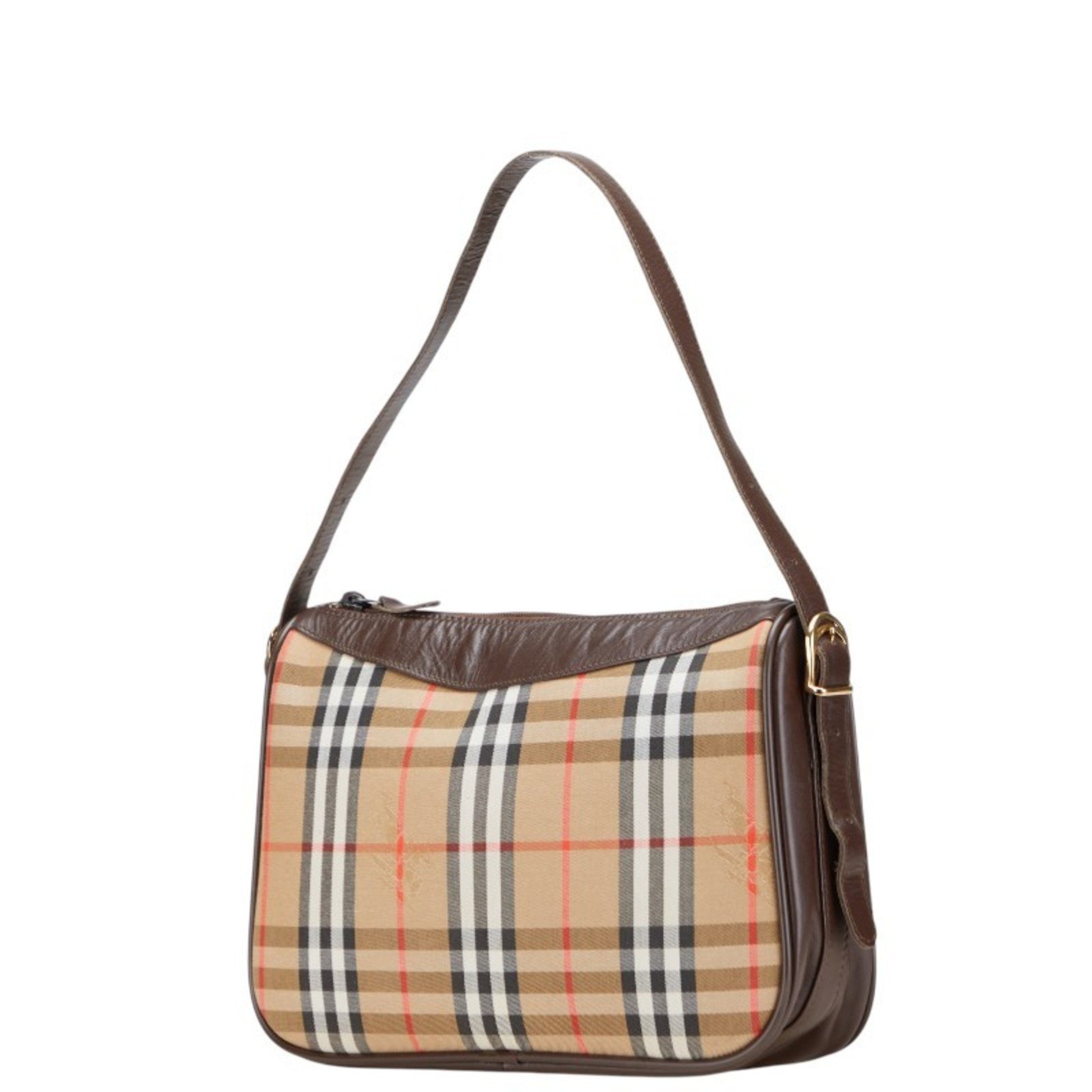 Burberry Nova Check Shadow Horse One-Shoulder Bag In Beige Multicolor Canvas