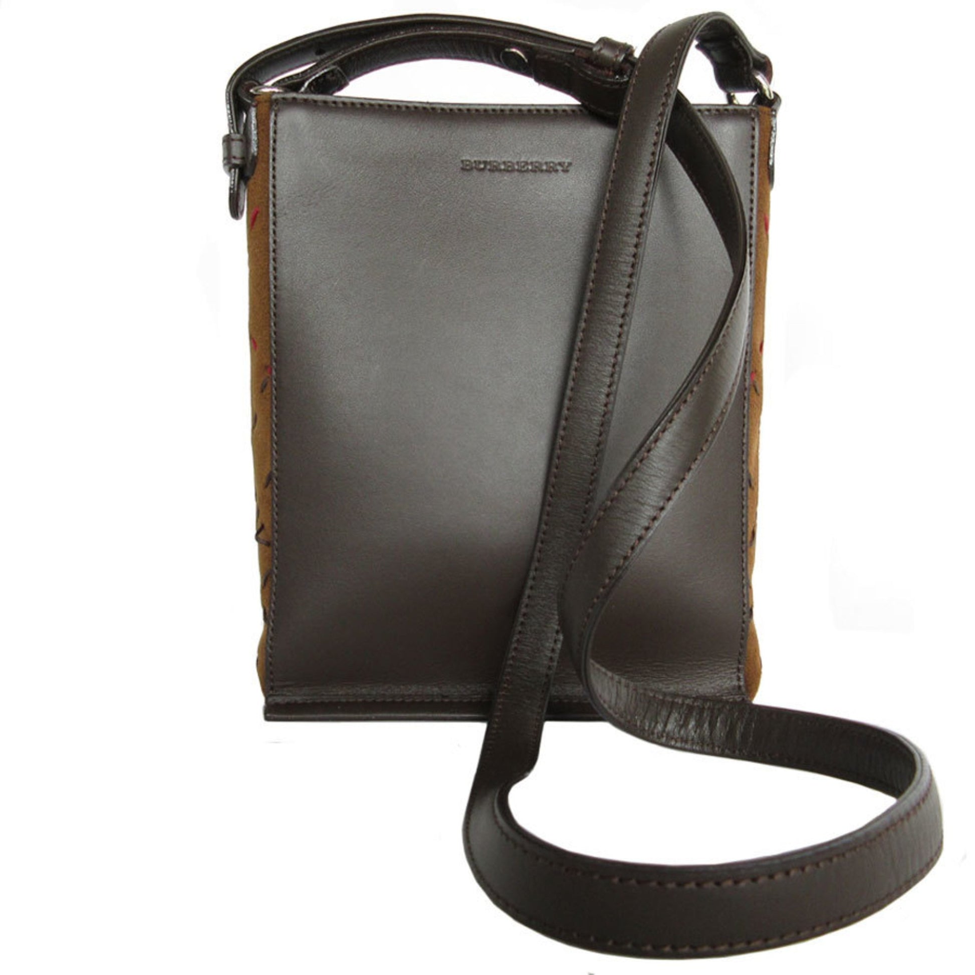 Burberry Shoulder Bag Leather Suede Brown