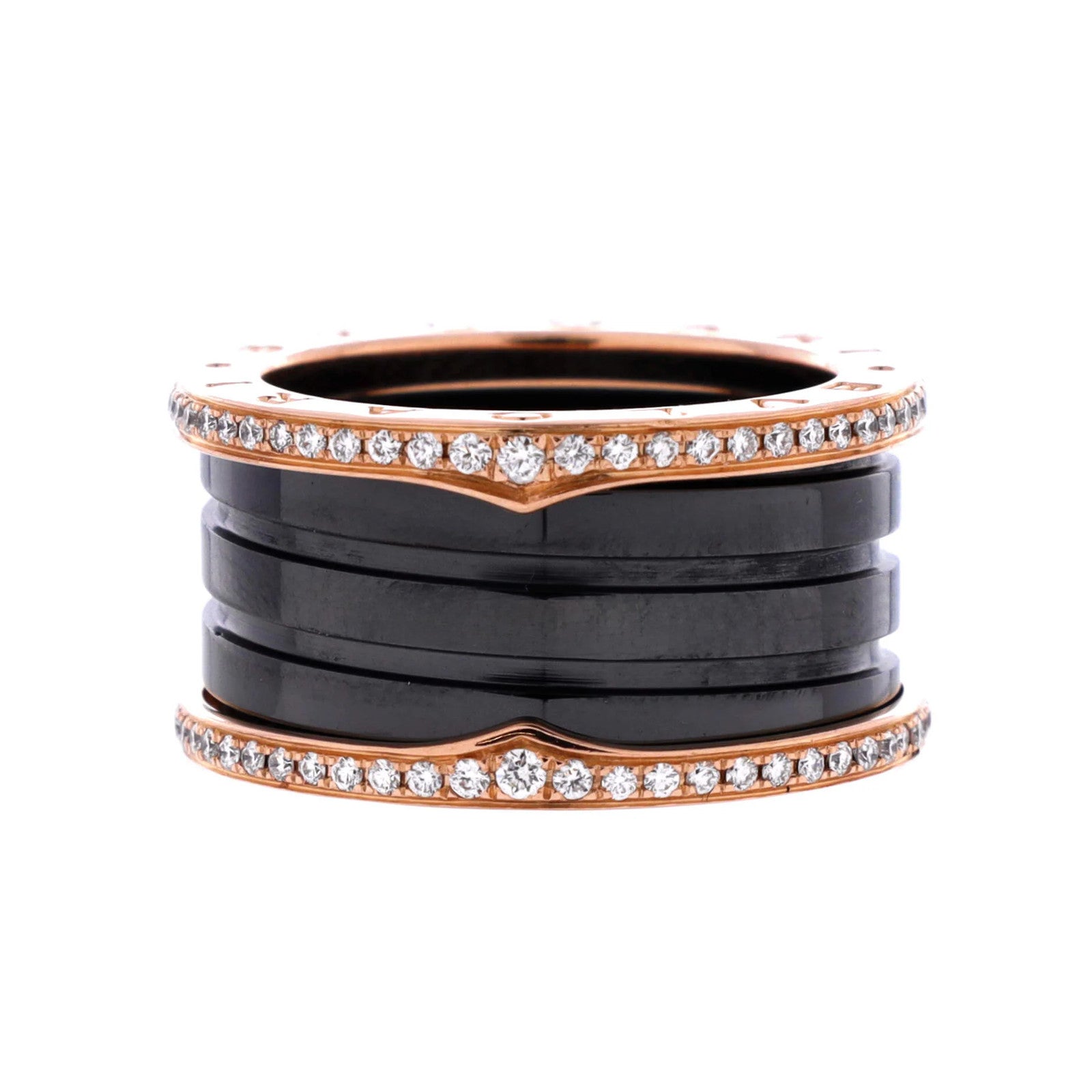 Model: B.Zero1 Three Band Ring 18K Rose Gold and Ceramic with Diamonds