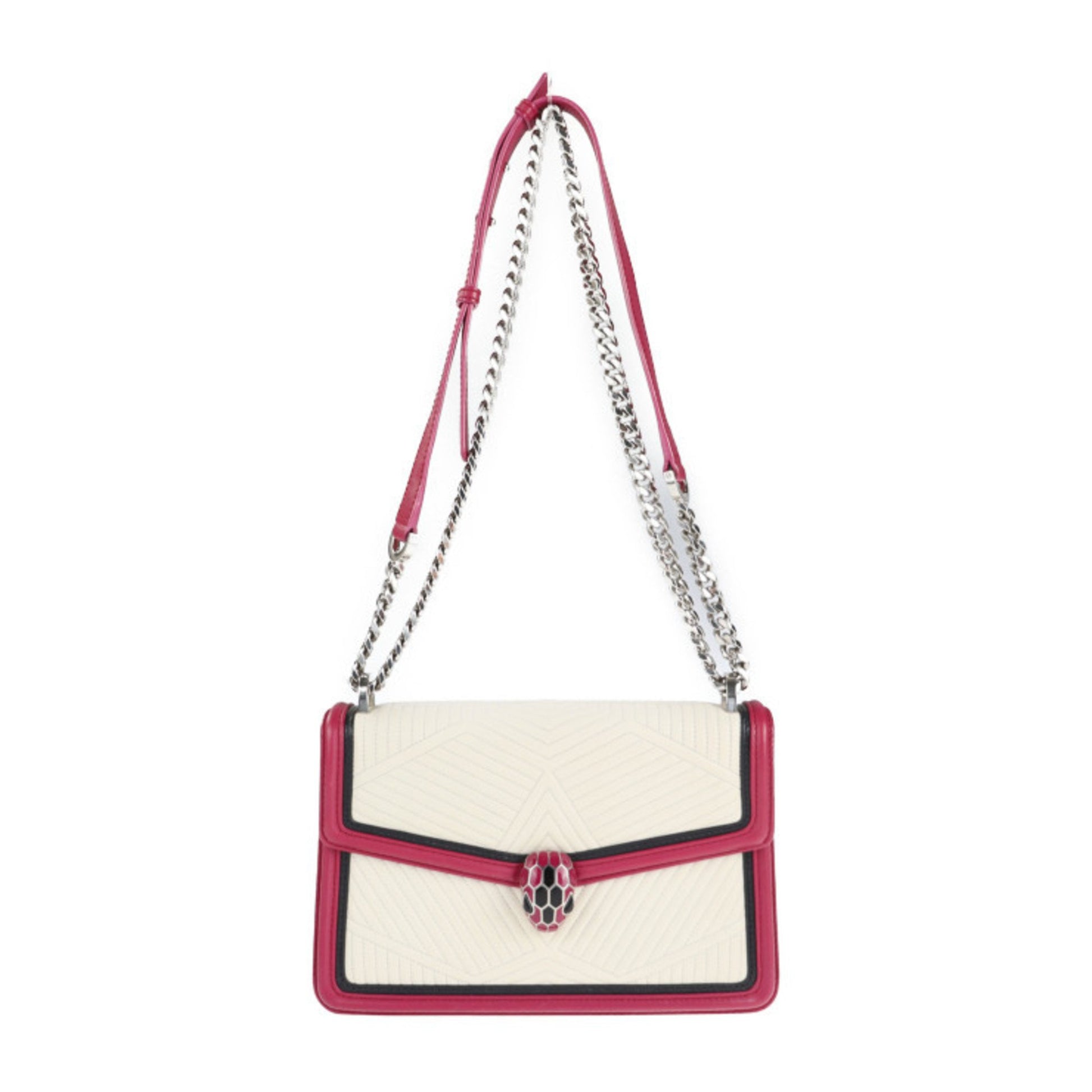 Bvlgari Bulgari Serpenti Diamond Blast Shoulder Bag Leather Fuchsia Ivory Black Quilted Chain