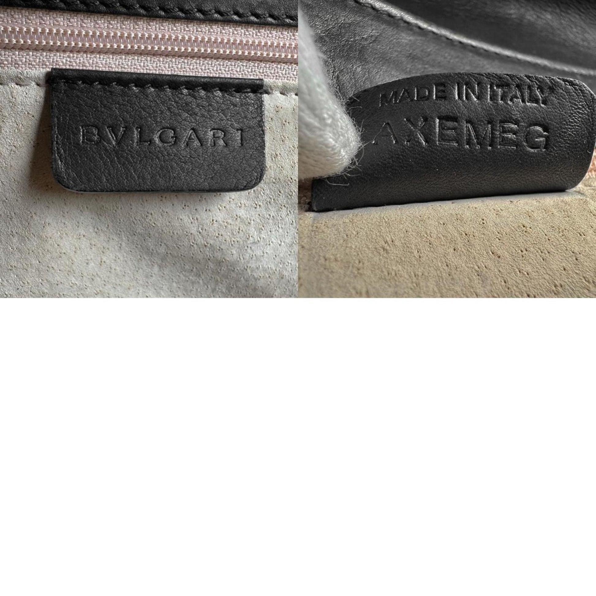 Bvlgari Handbag Canvas Leather Black Silver