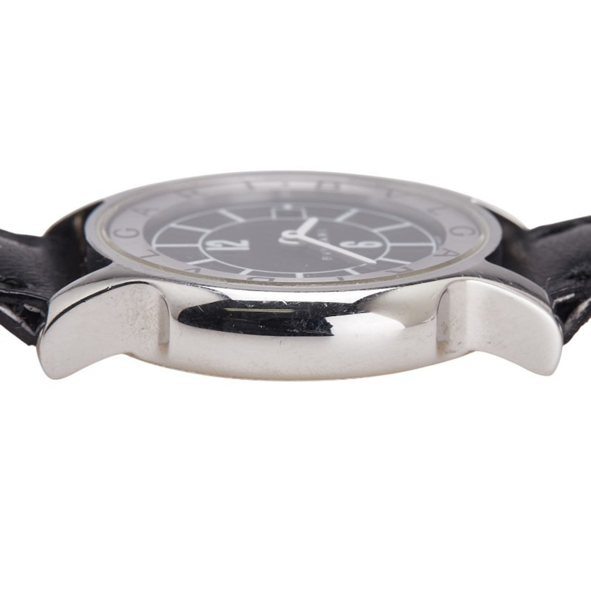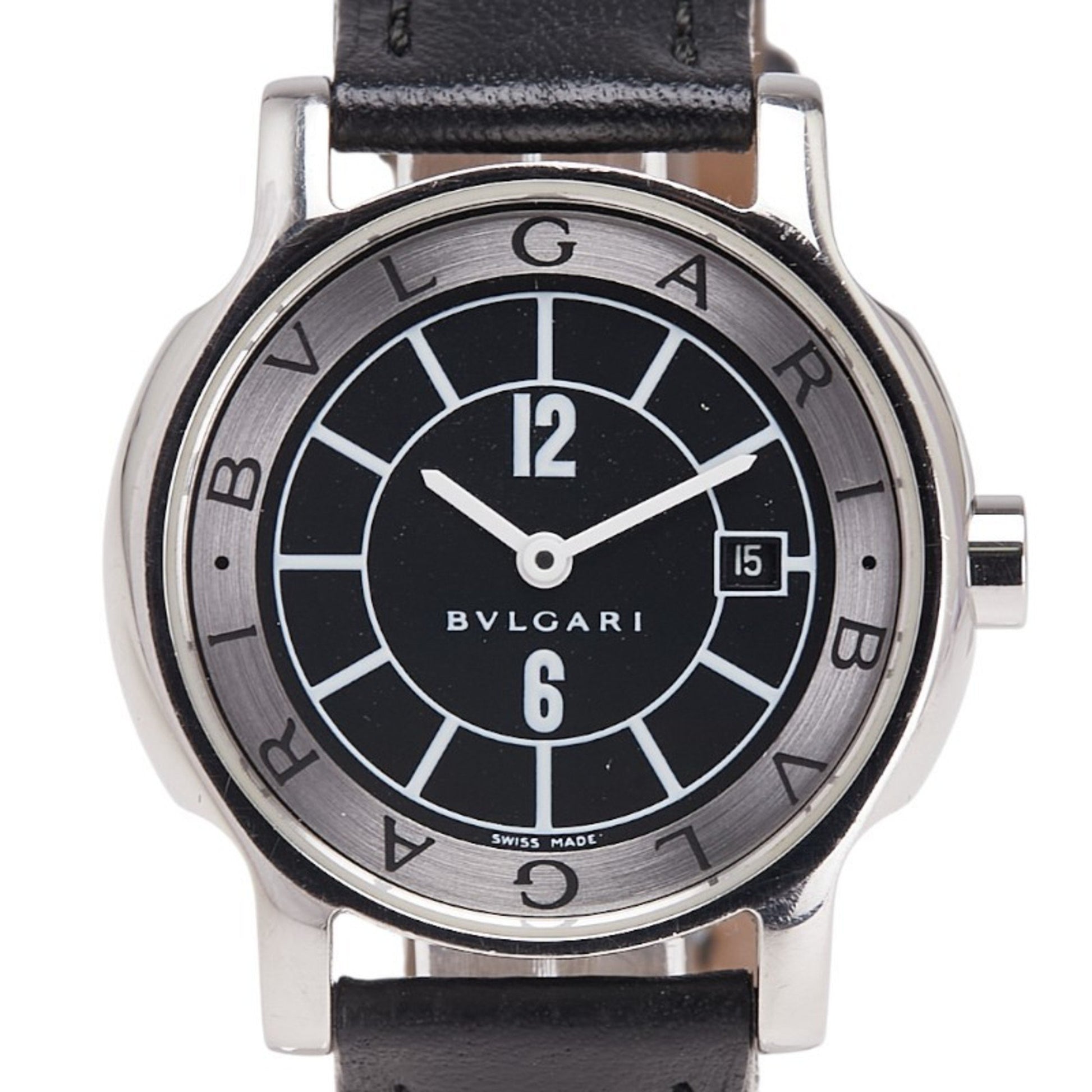 Bvlgari Solotempo Date Watch St29S Quartz Movement Black Dial Stainless Steel Leather