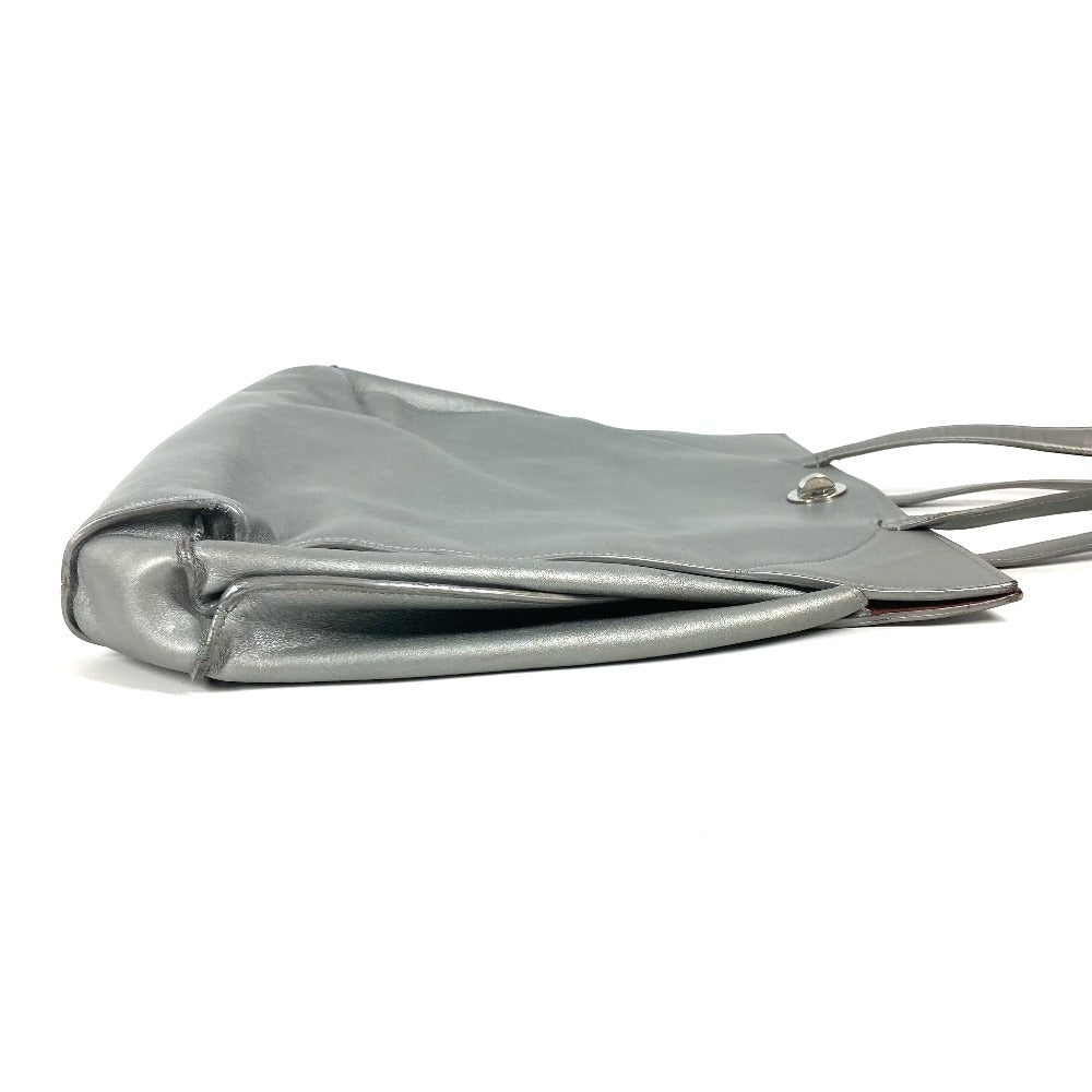 Bvlgari Tote Bag Leather Silver Shoulder Logo Turn Lock Unisex(Unisex)
