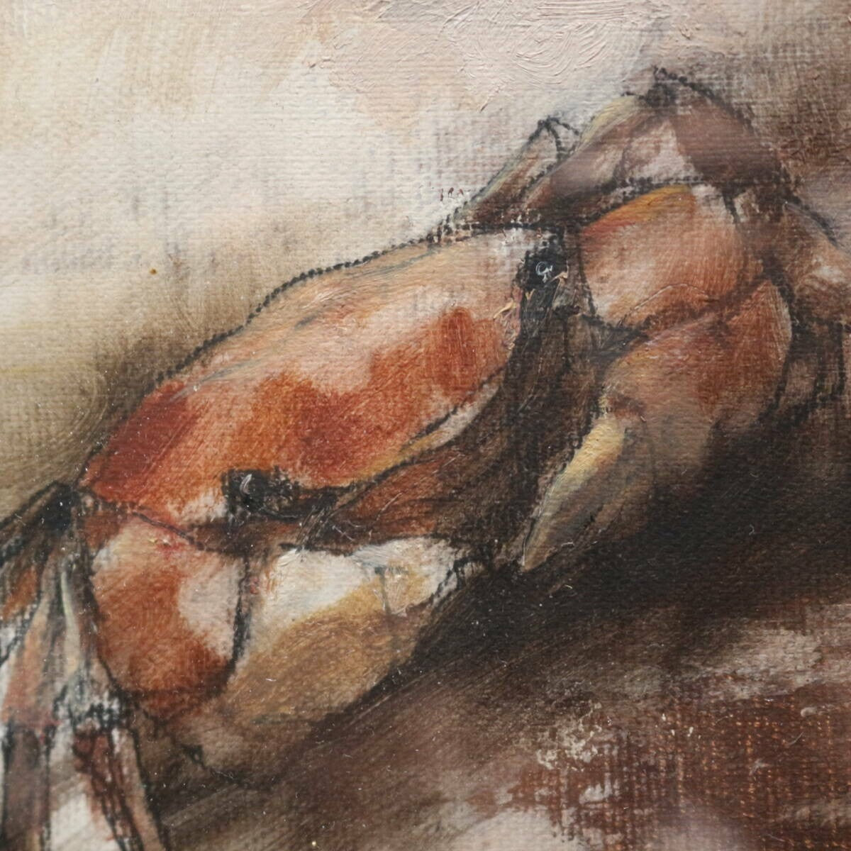 Cai Guohua ( China 1964) Signed Original Painting Oil On Canvas Framed Crab