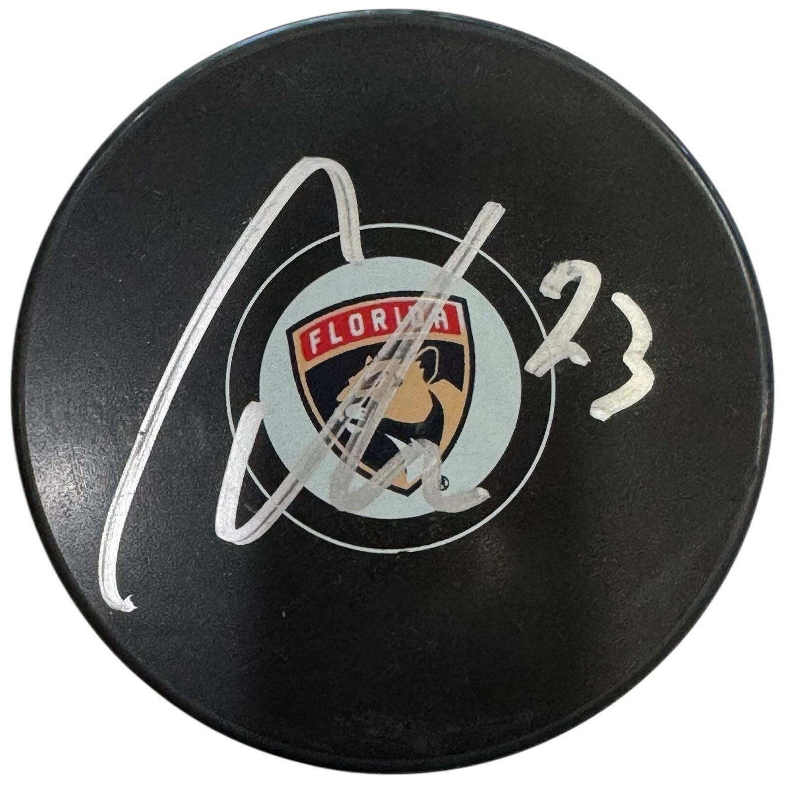 Carter Verhaeghe Autographed Official Panthers Puck (Beckett Witness)
