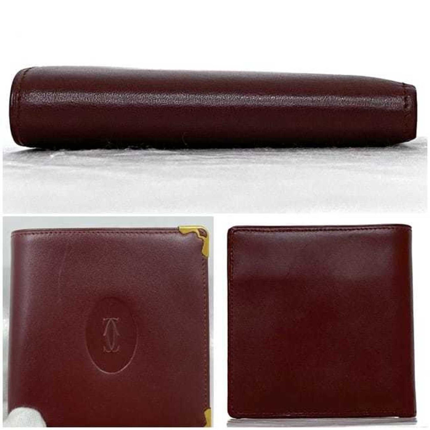 Cartier Bi-Fold Wallet Ec-23427 Bordeaux Must Leather Compact Folding