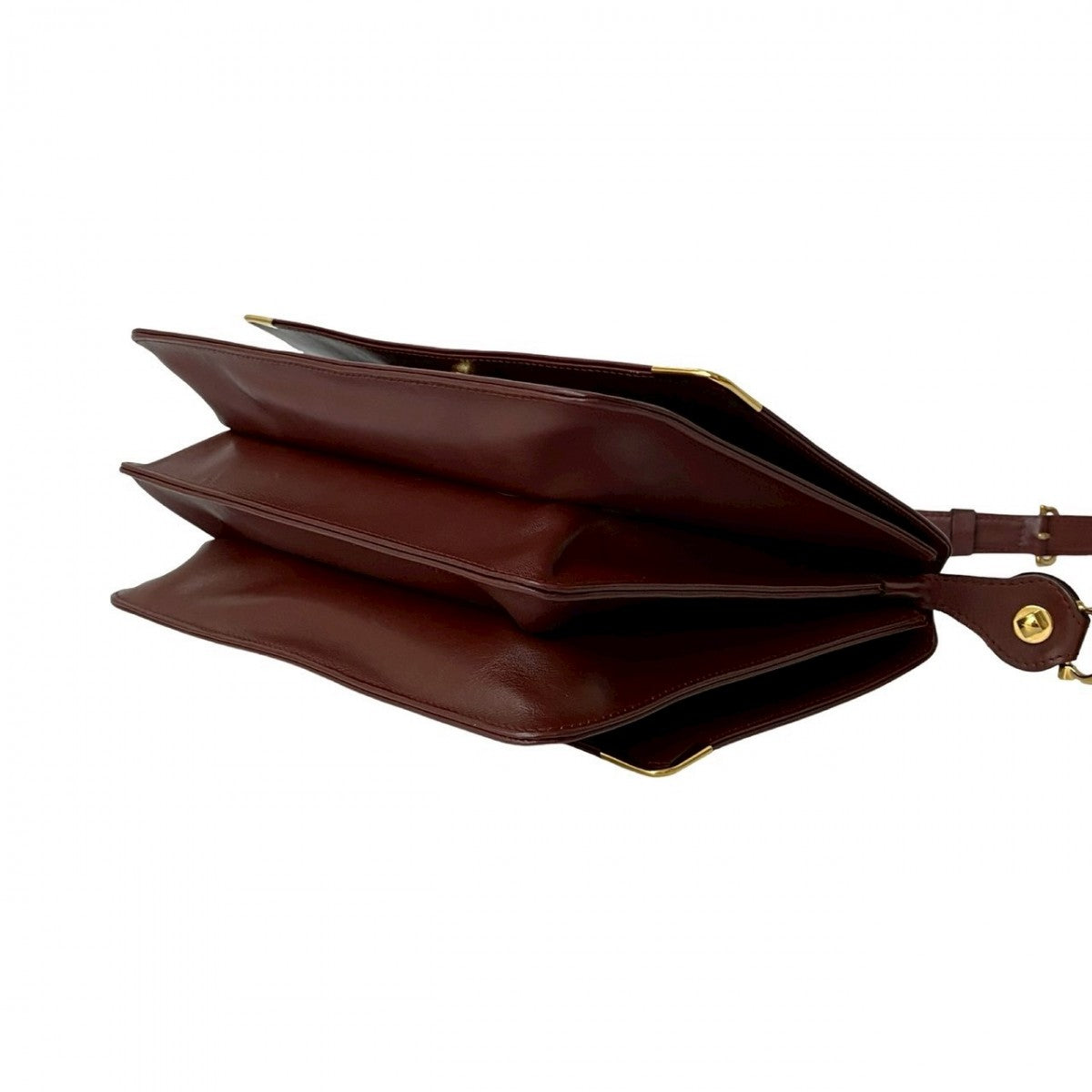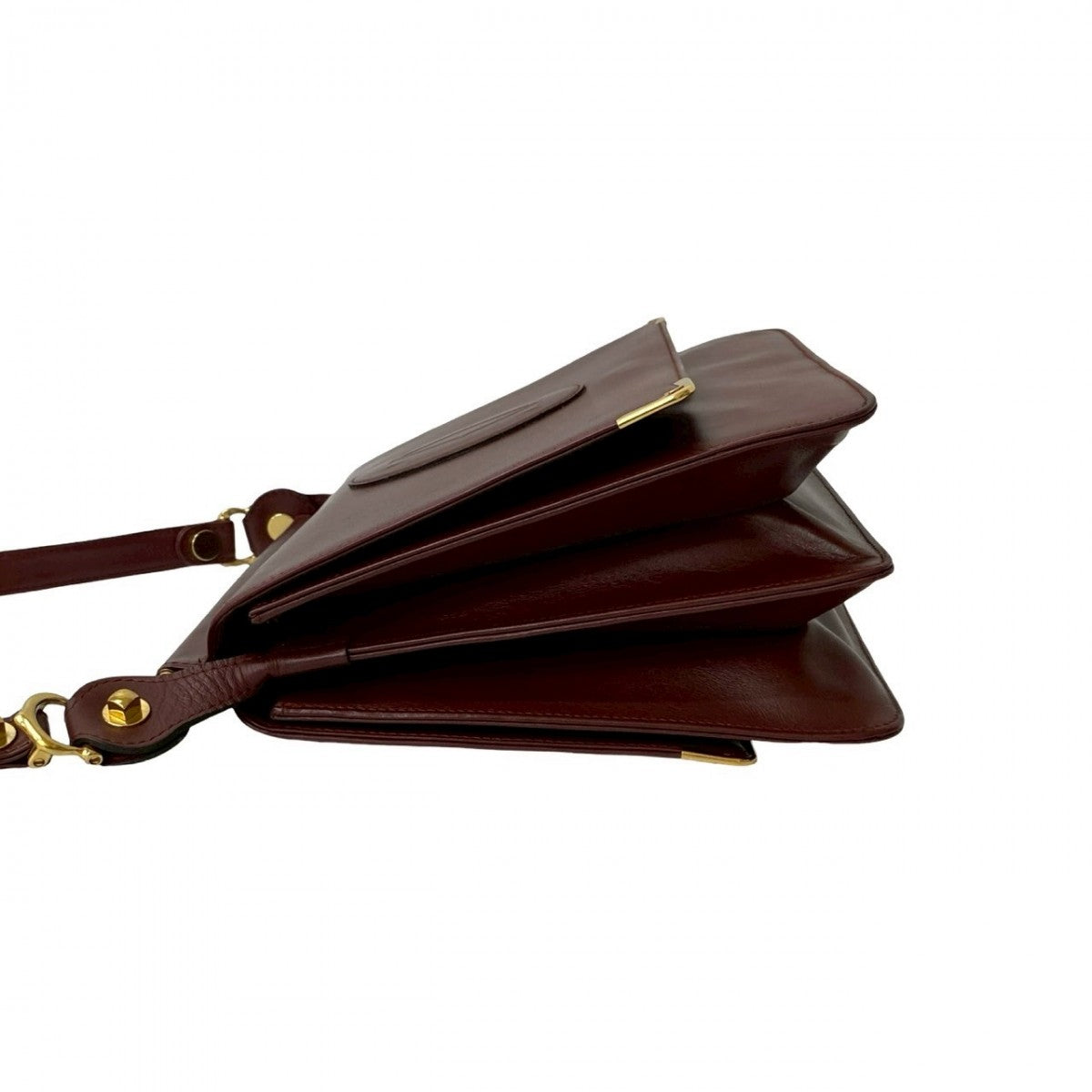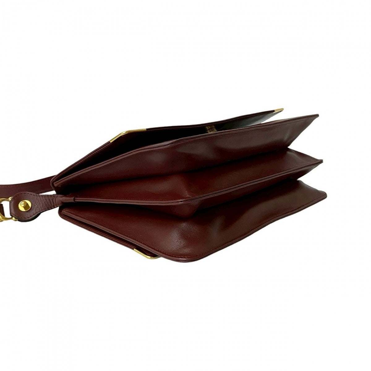Cartier Shoulder Bag Leather Wine-Red Must Line Women