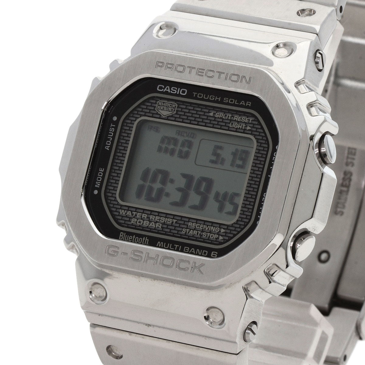 Casio Watches Solar Powered Gmw-B5000 Stainless Steel , Stainless Steel Silver G Shock Digital Dial