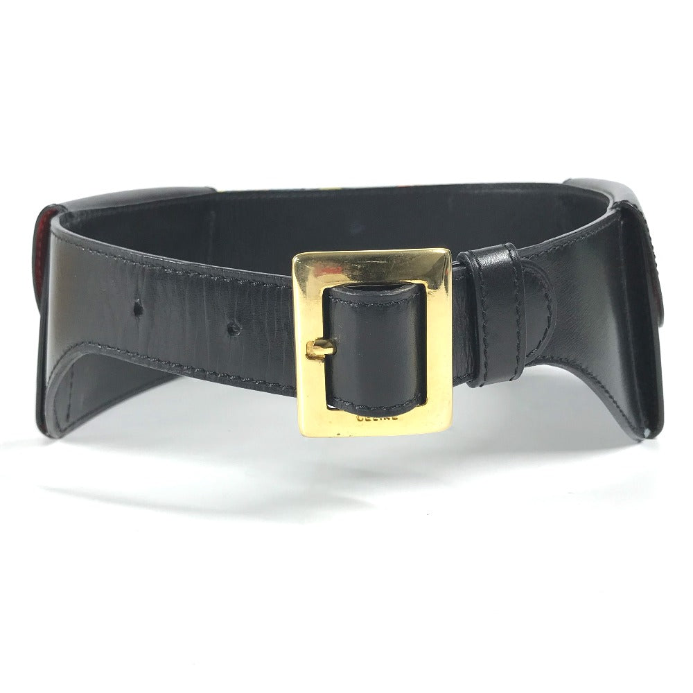 Celine Belt Leather, Silk Black Vintage Wide Belt Scarf Pattern Women 65