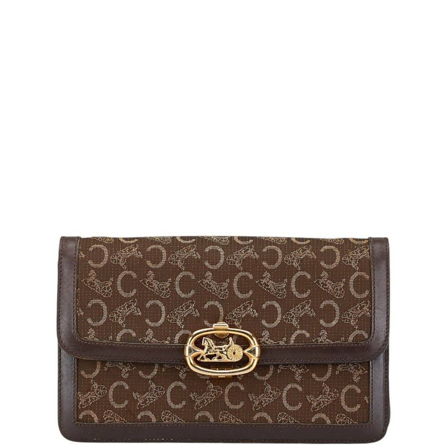 Celine C Macadam Carriage Hardware Clutch Bag In Brown Canvas
