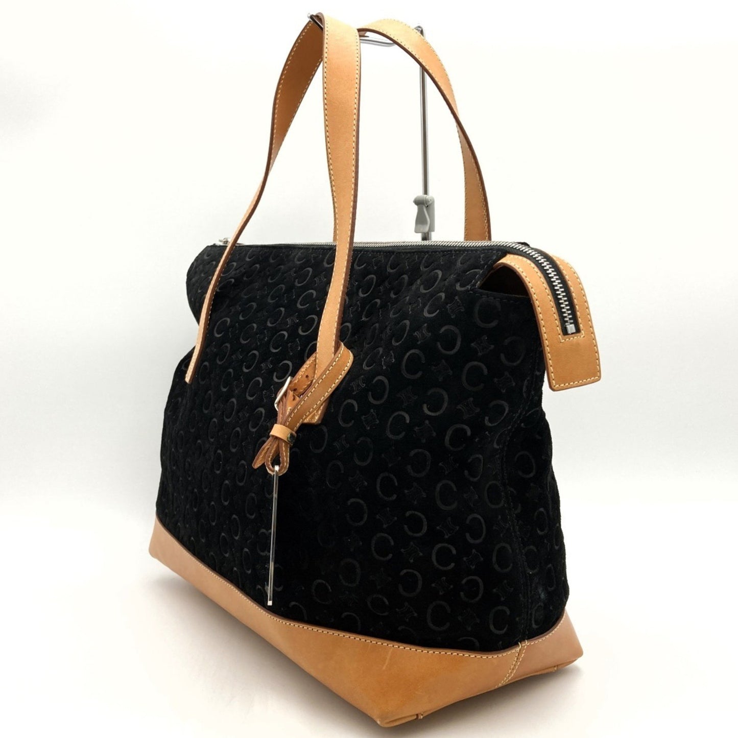 Celine C Macadam Tote Bag Handbag Black Suede Leather