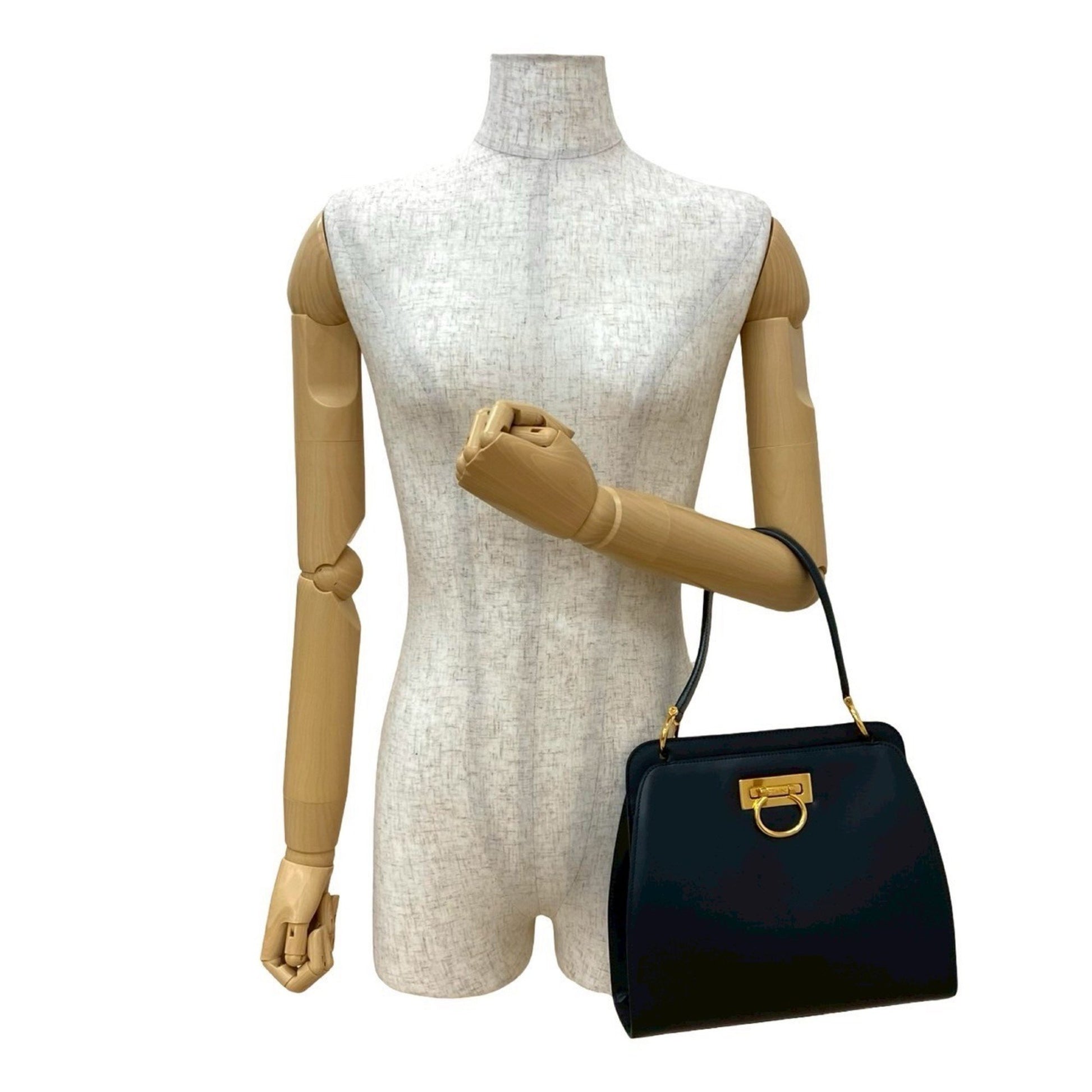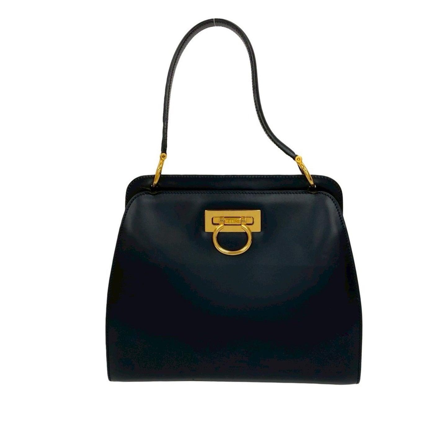 Celine Double-Faced Gancini Leather Handbag/Tote Bag In Navy Blue