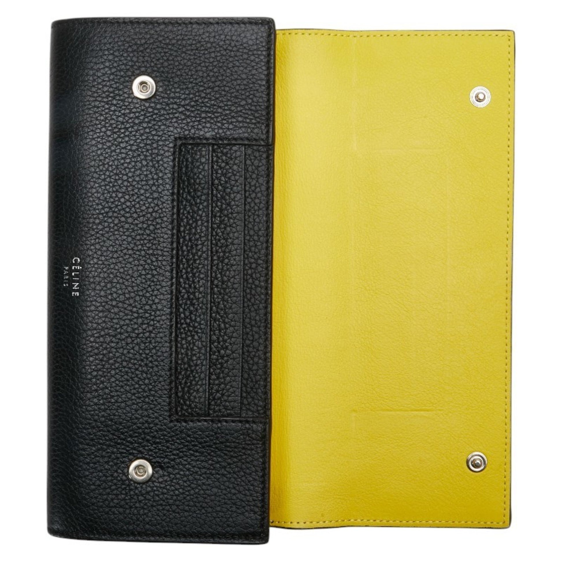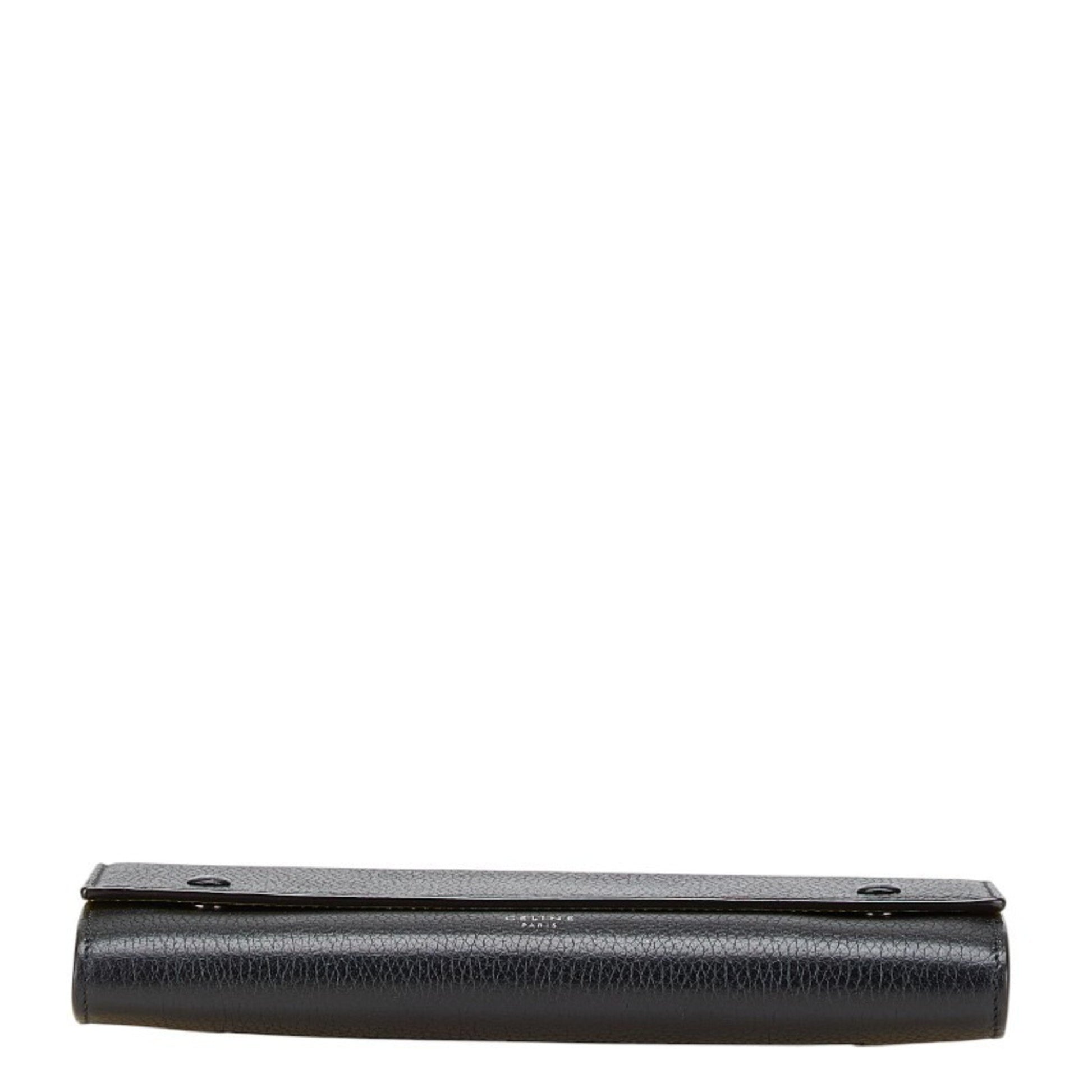 Celine Large Flap Multi-Cushion Long Wallet In Black Leather