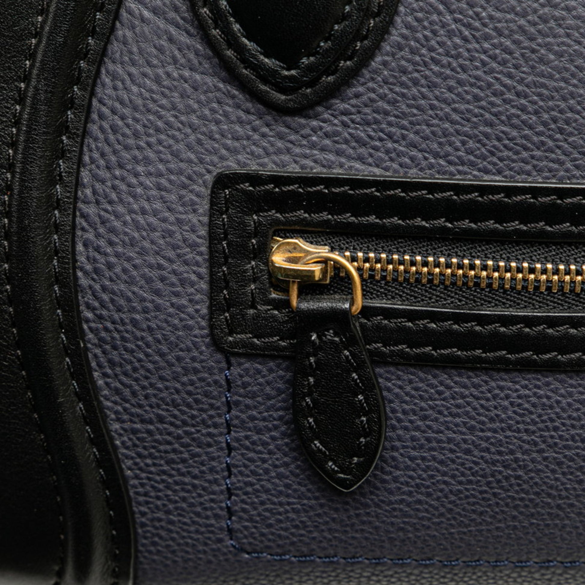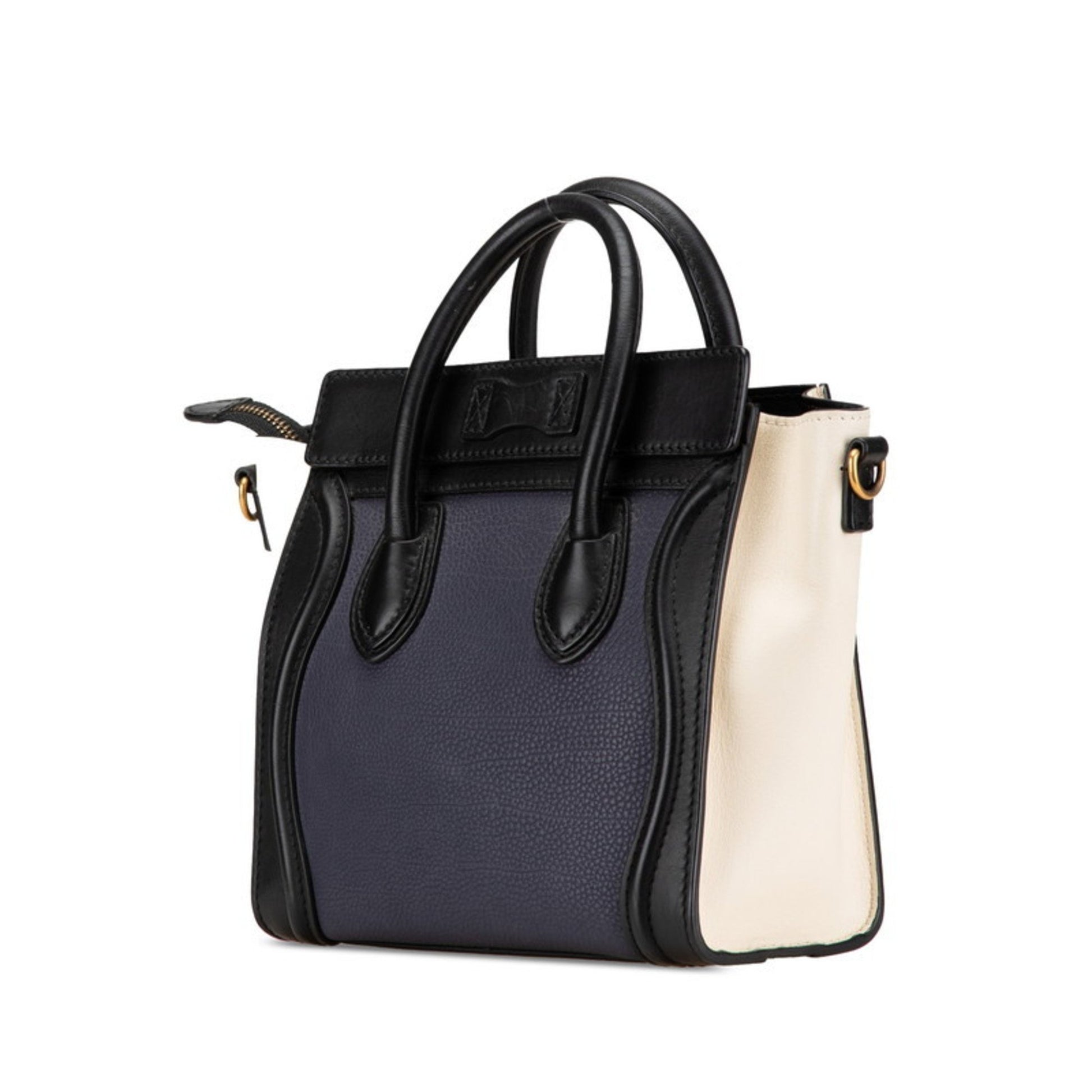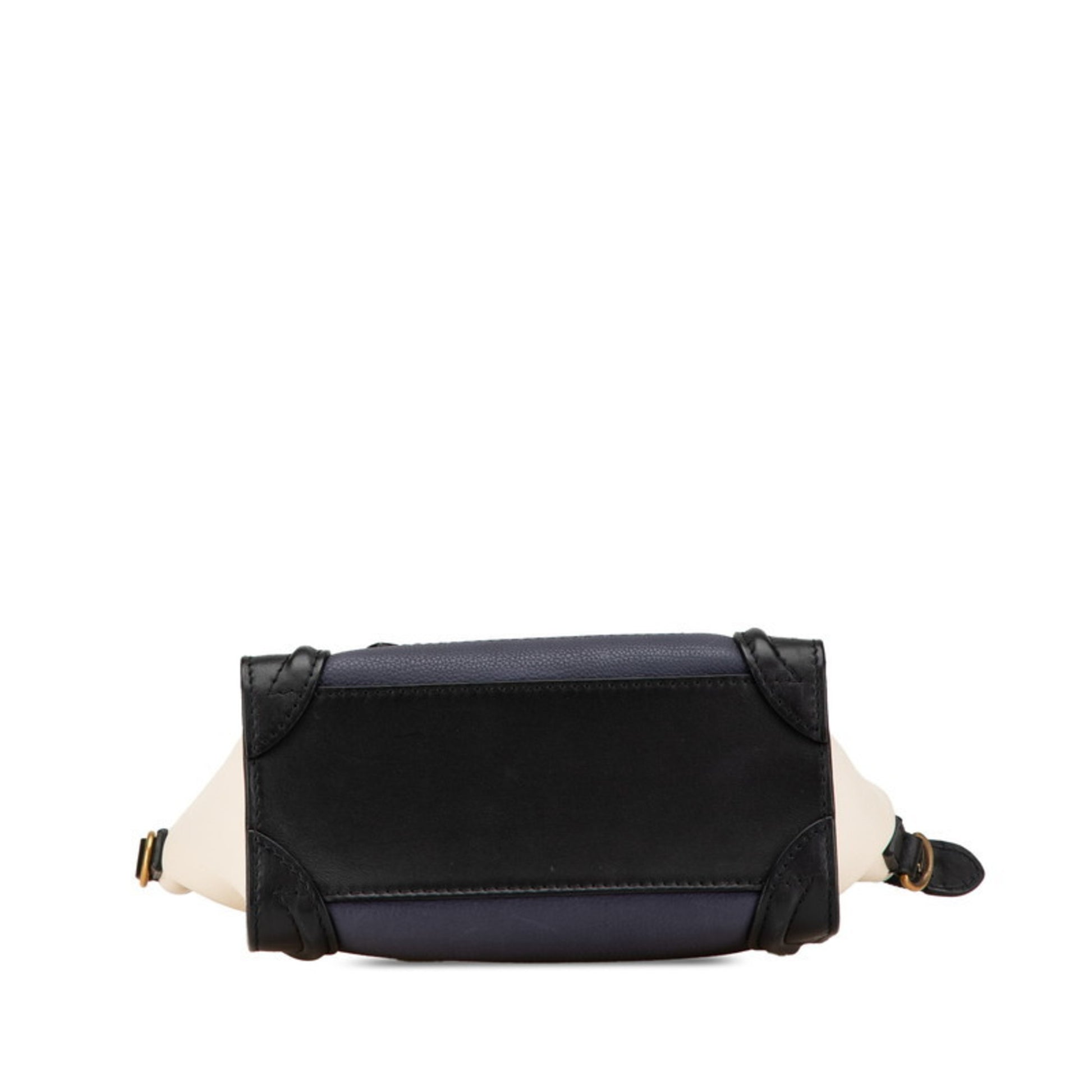 Celine Luggage Nano Shopper Tricolor Handbag Shoulder Bag 2Way Navy Black White Leather