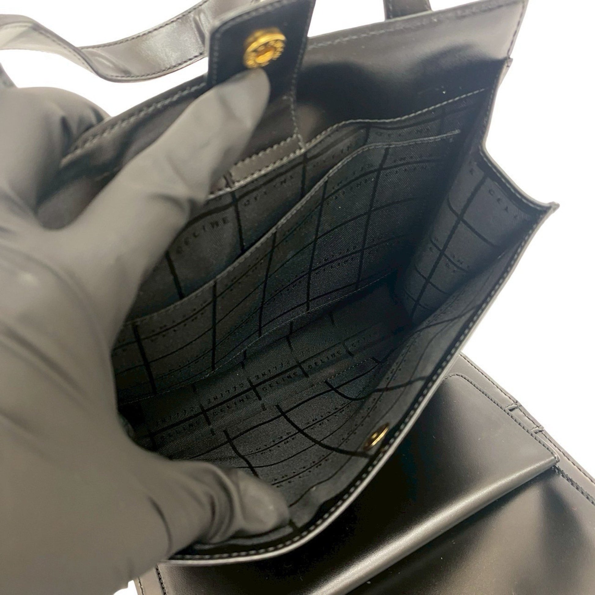 Celine Macadam Blason Pattern Leather Handbag/Mini Tote Bag In Black