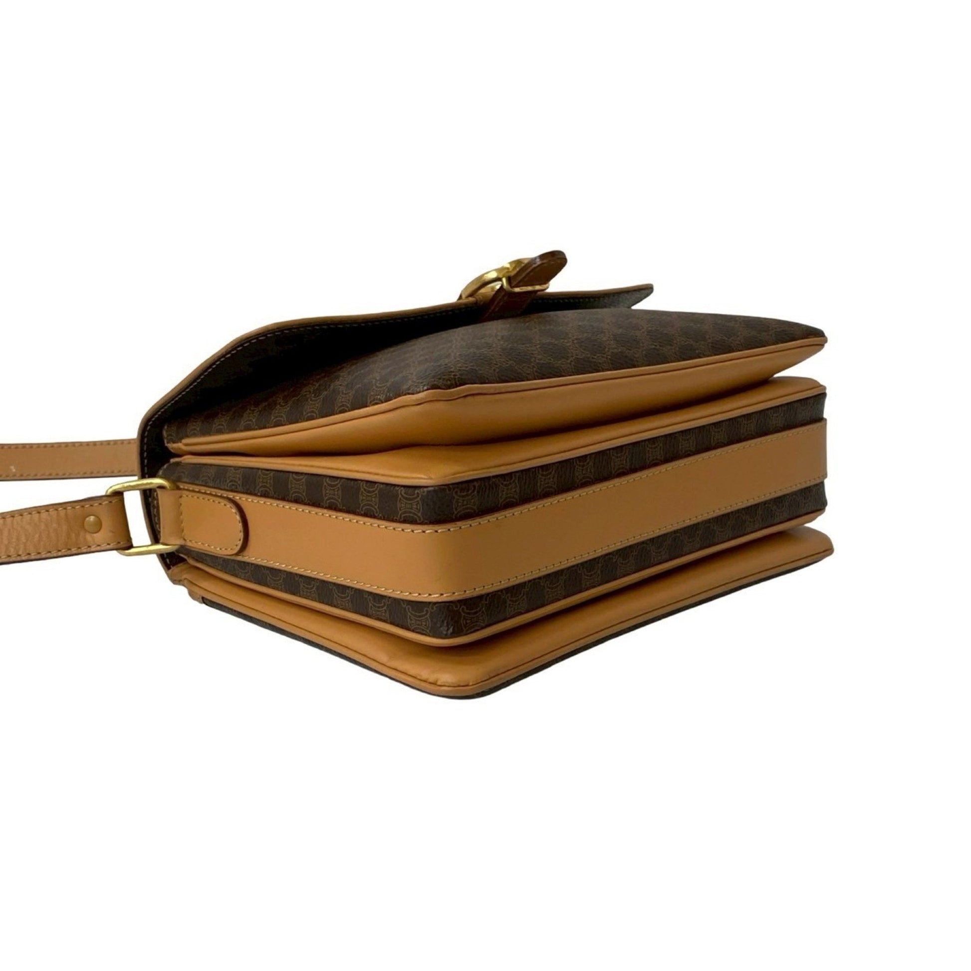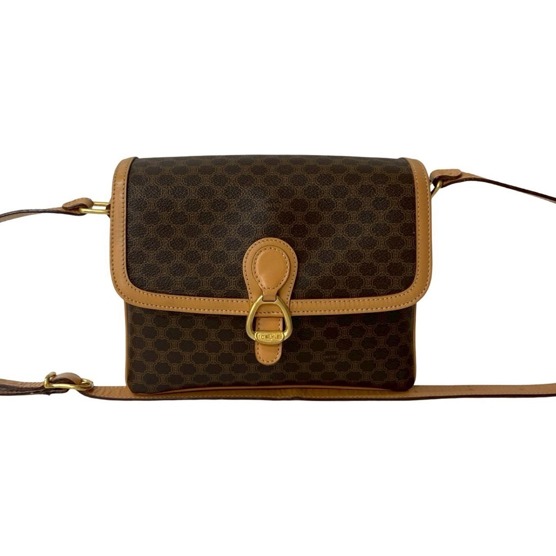 Celine Macadam Blason Pattern Logo Hardware Leather Shoulder Bag Pochette Brown 28847