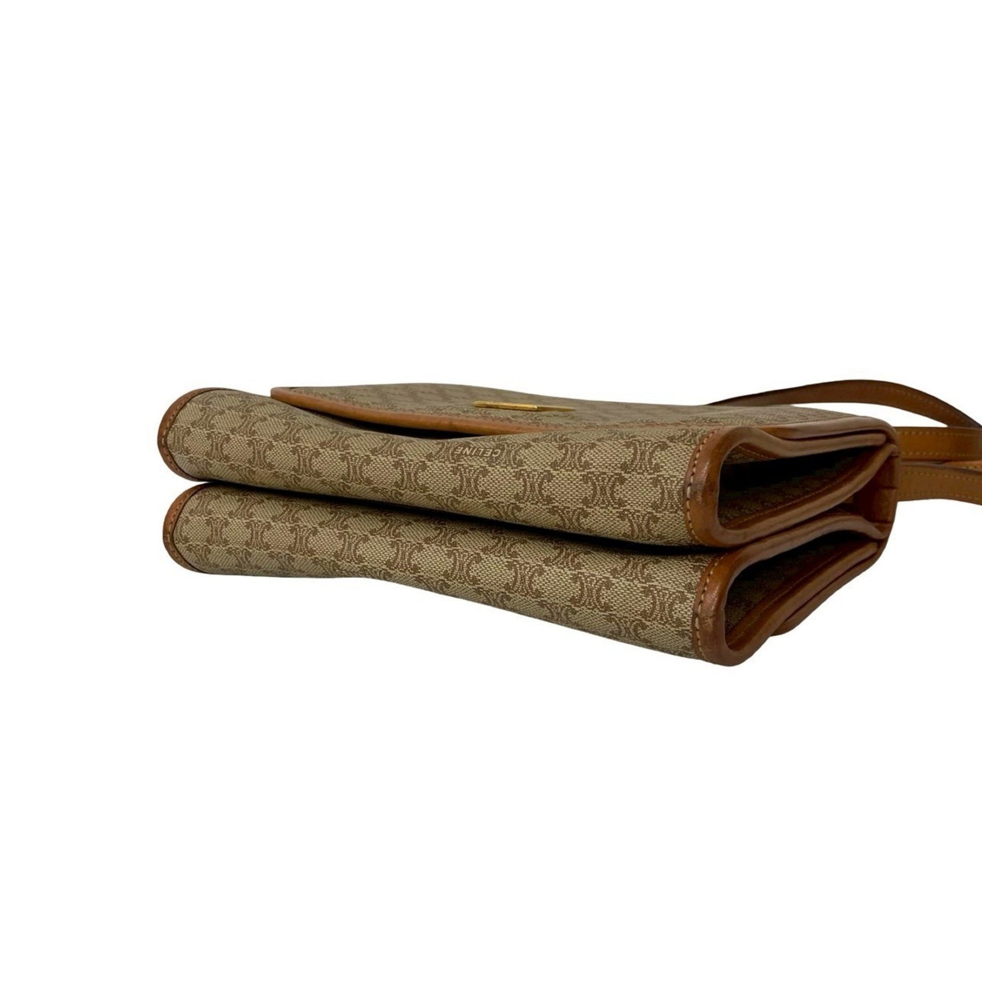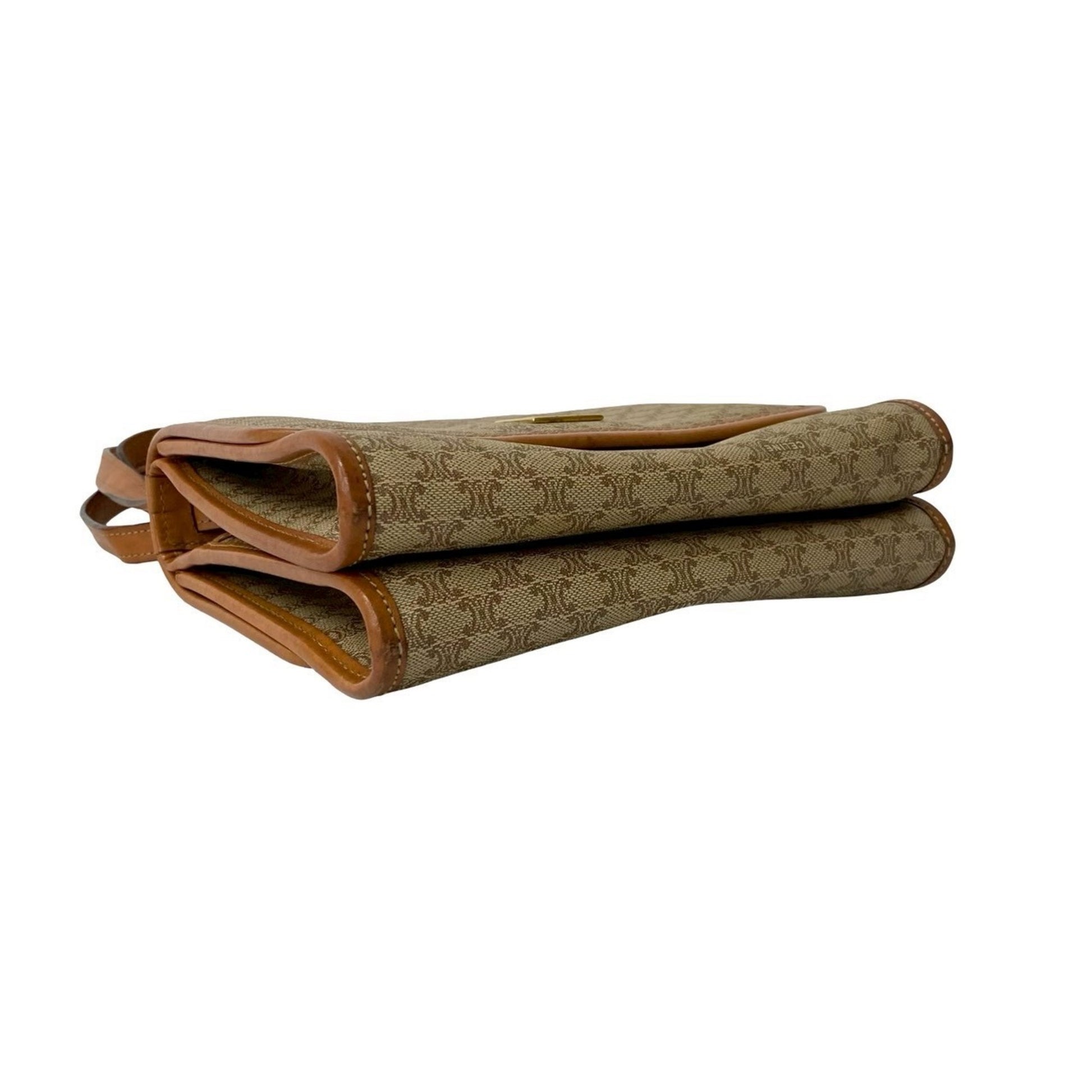Celine Macadam Blason Pattern Logo Hardware Reversible Leather Shoulder Bag Beige Brown 35774
