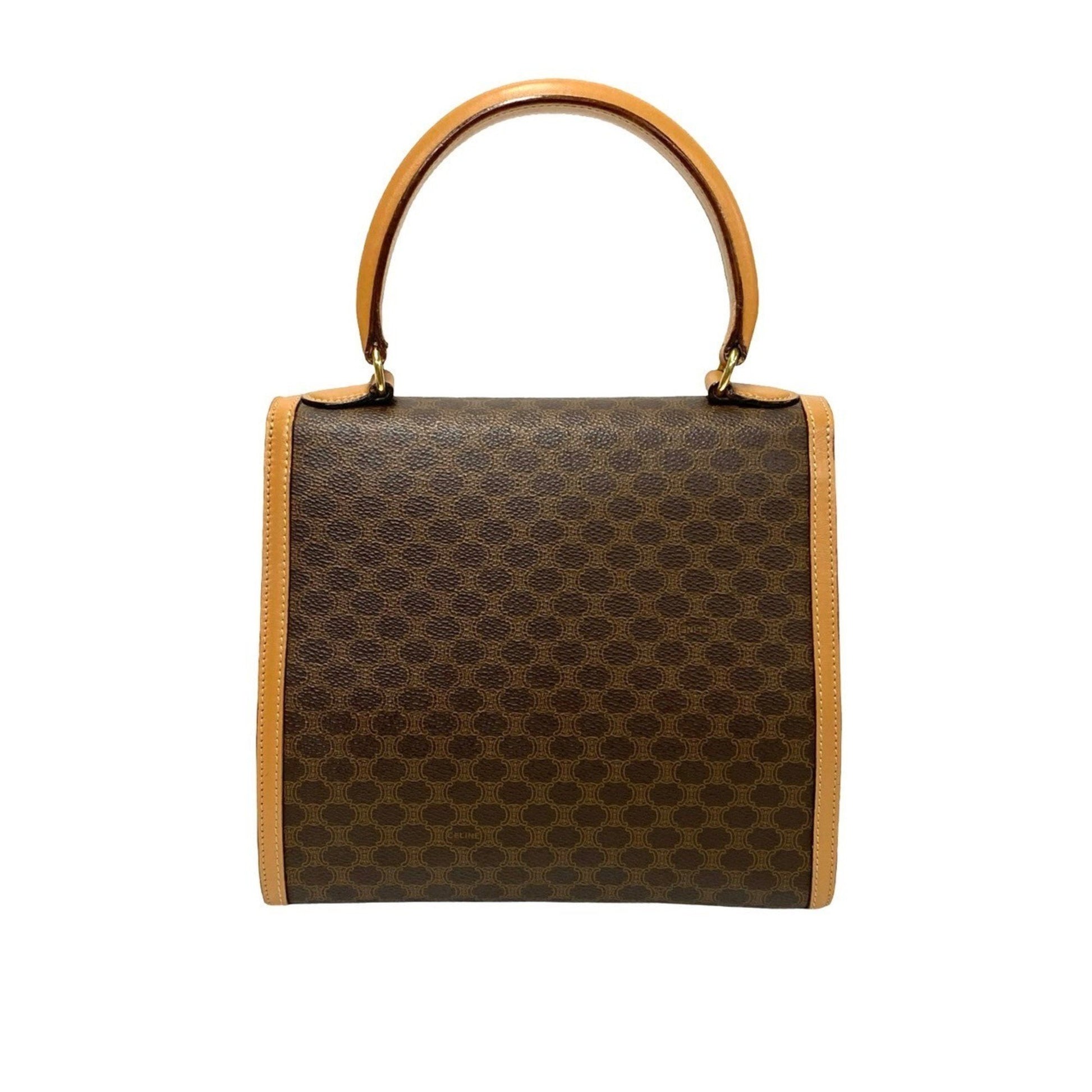Celine Macadam Blason Triomphe Print Logo Ring Hardware Leather 2-Way Handbag/Shoulder Bag Brown